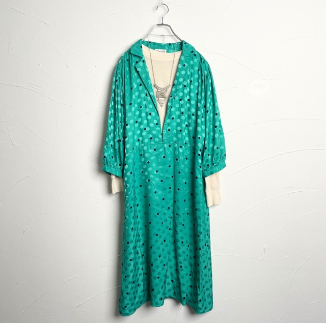 【Ladies】Onepiece / 古着 ワンピースドット 水玉 エメラルドグリーン