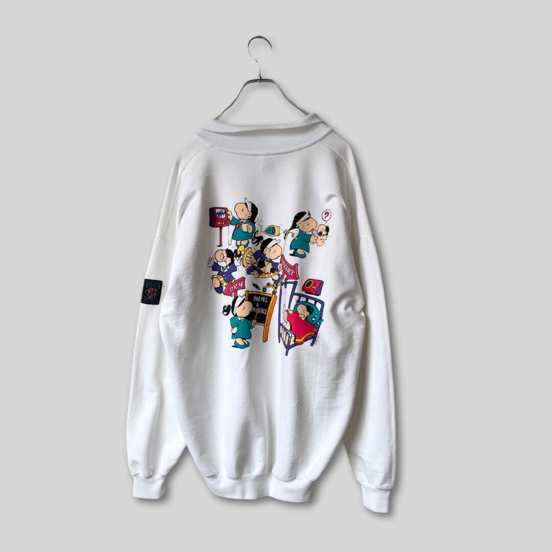 90s “HUMOR DESIGN” sweat shirt / 古着 プリントスウェット 襟付き