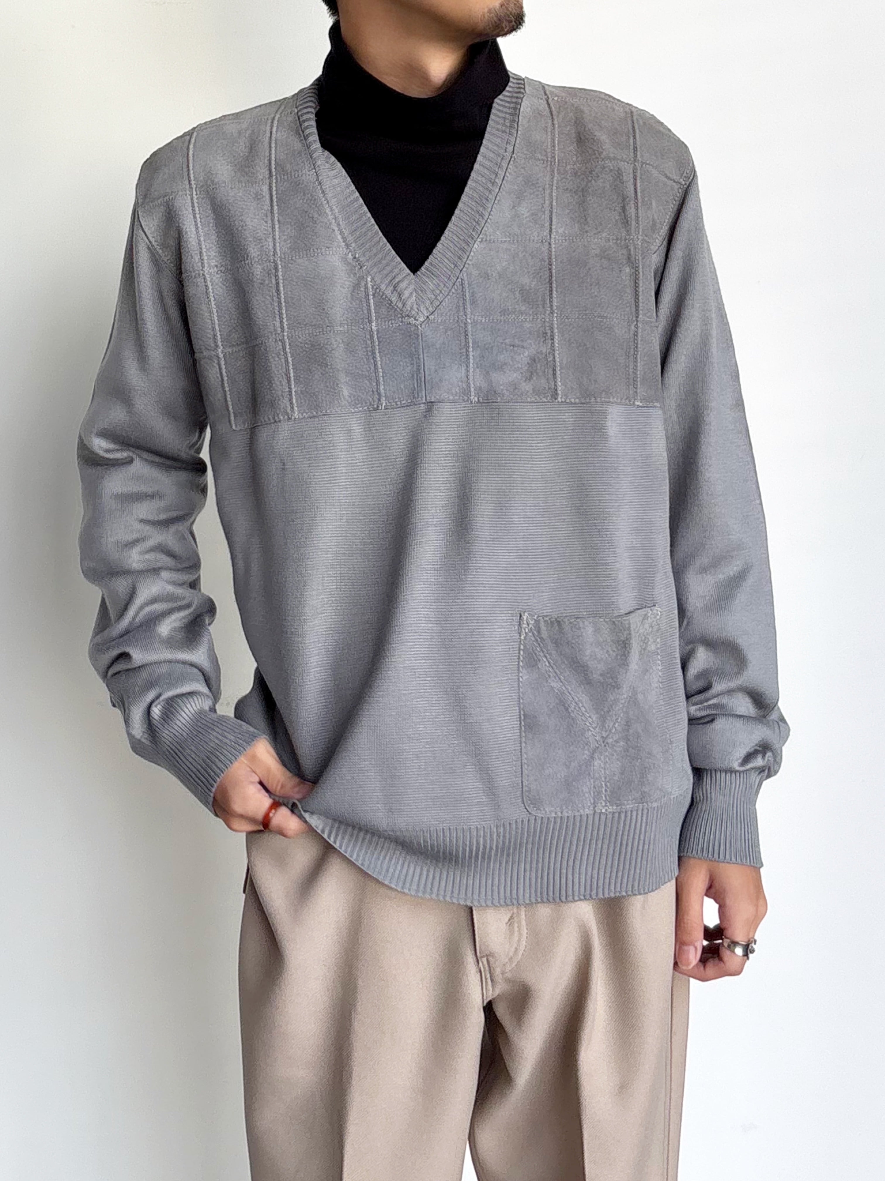 Suede switching knit / 古着 スウェード レザー 切り替えニット