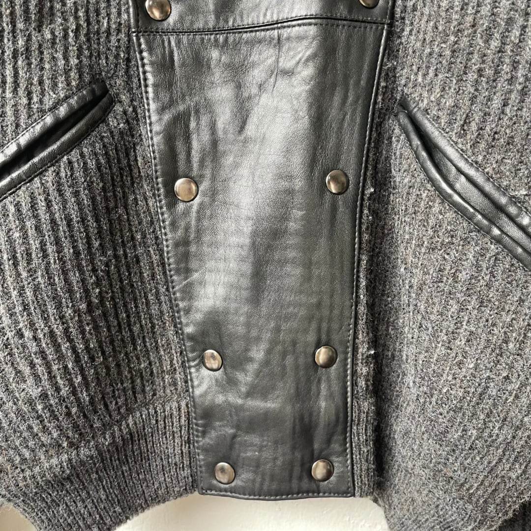 Leather switching knit cardigan / 古着 レザー切り替え ニットカーディガン ショールカラー