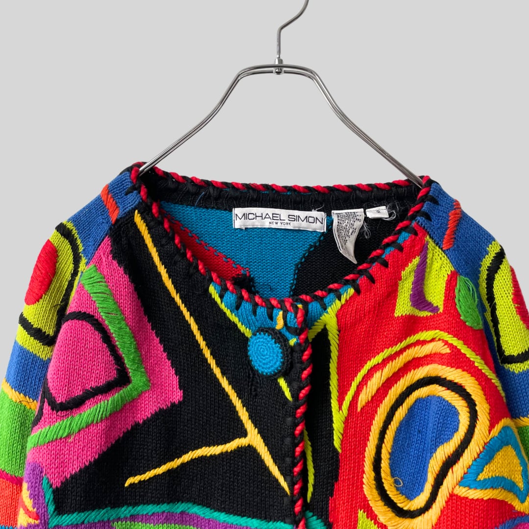 Design knit cardigan / 古着 デザイン アート ニットカーディガン
