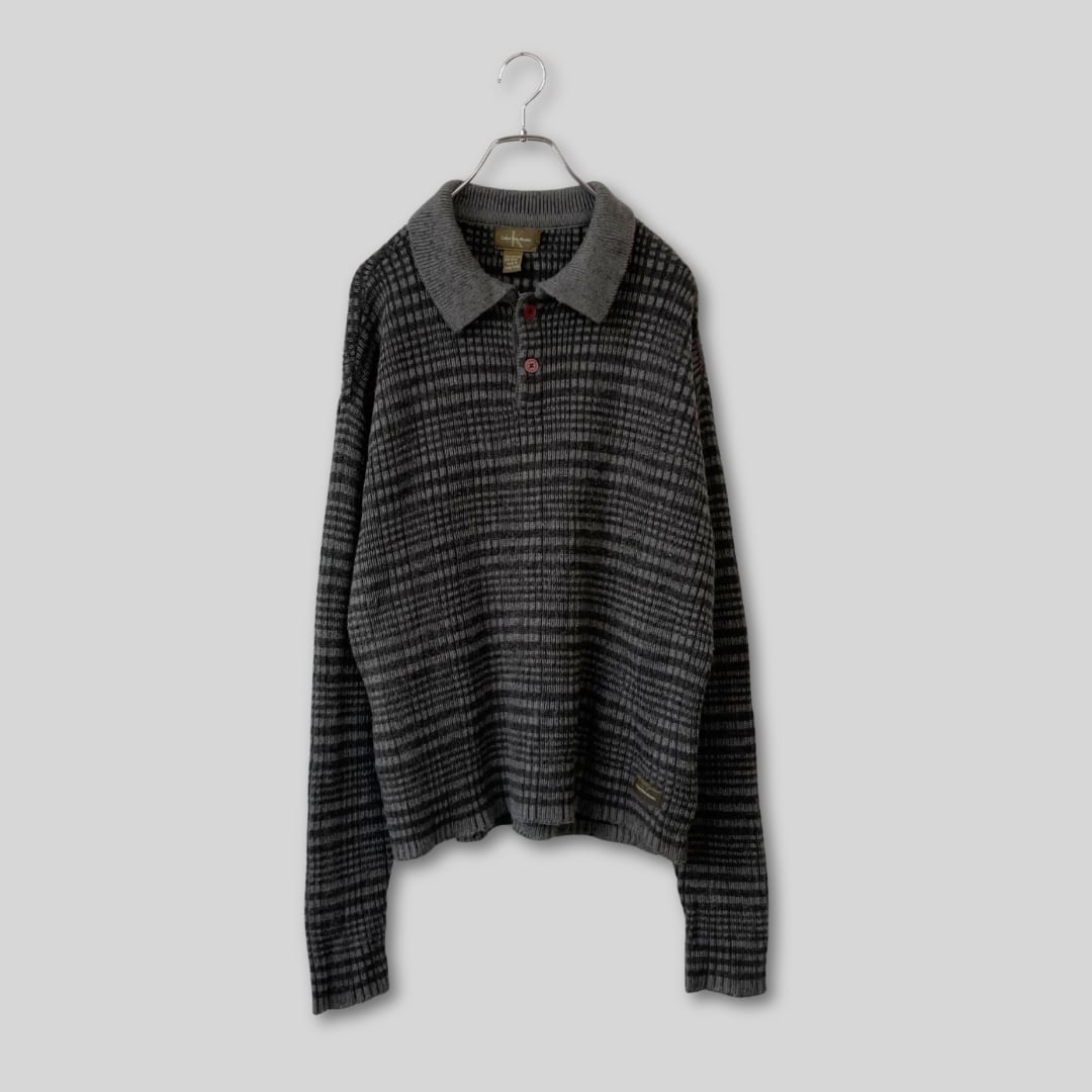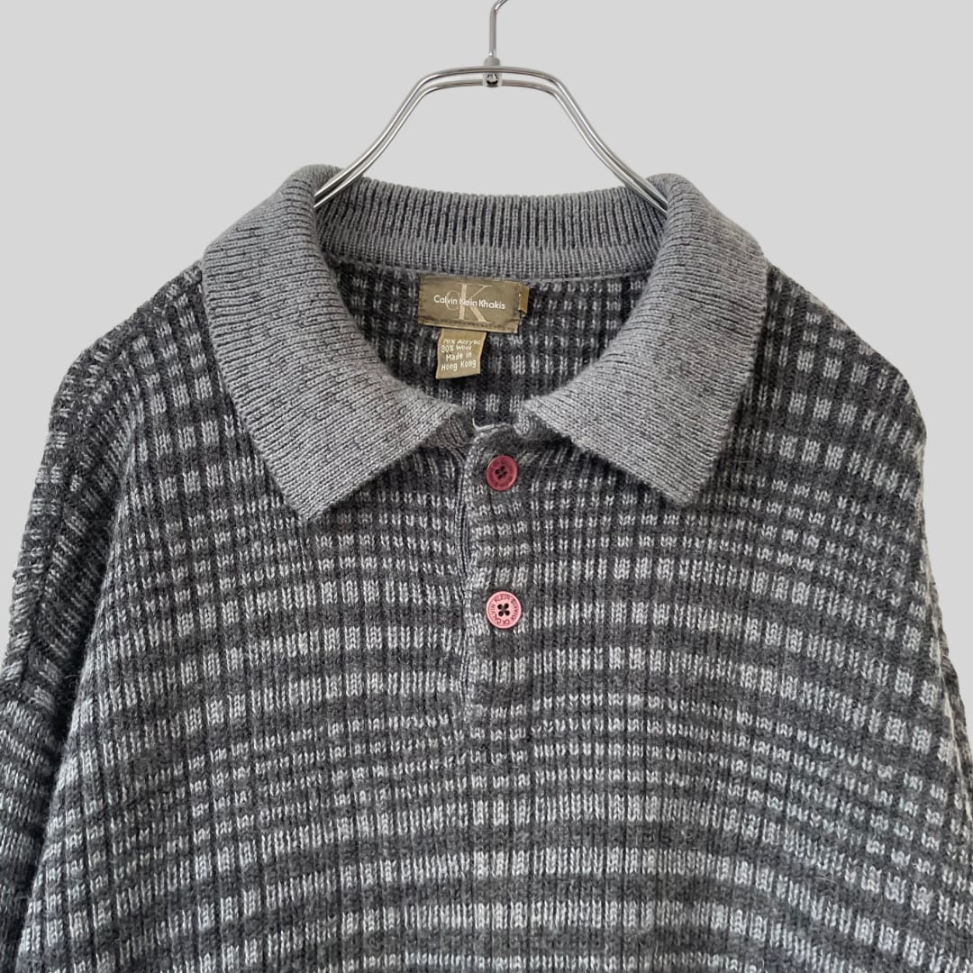 “Calvin Klein” polo knit / 古着 カルバンクライン チェック柄 ポロニット