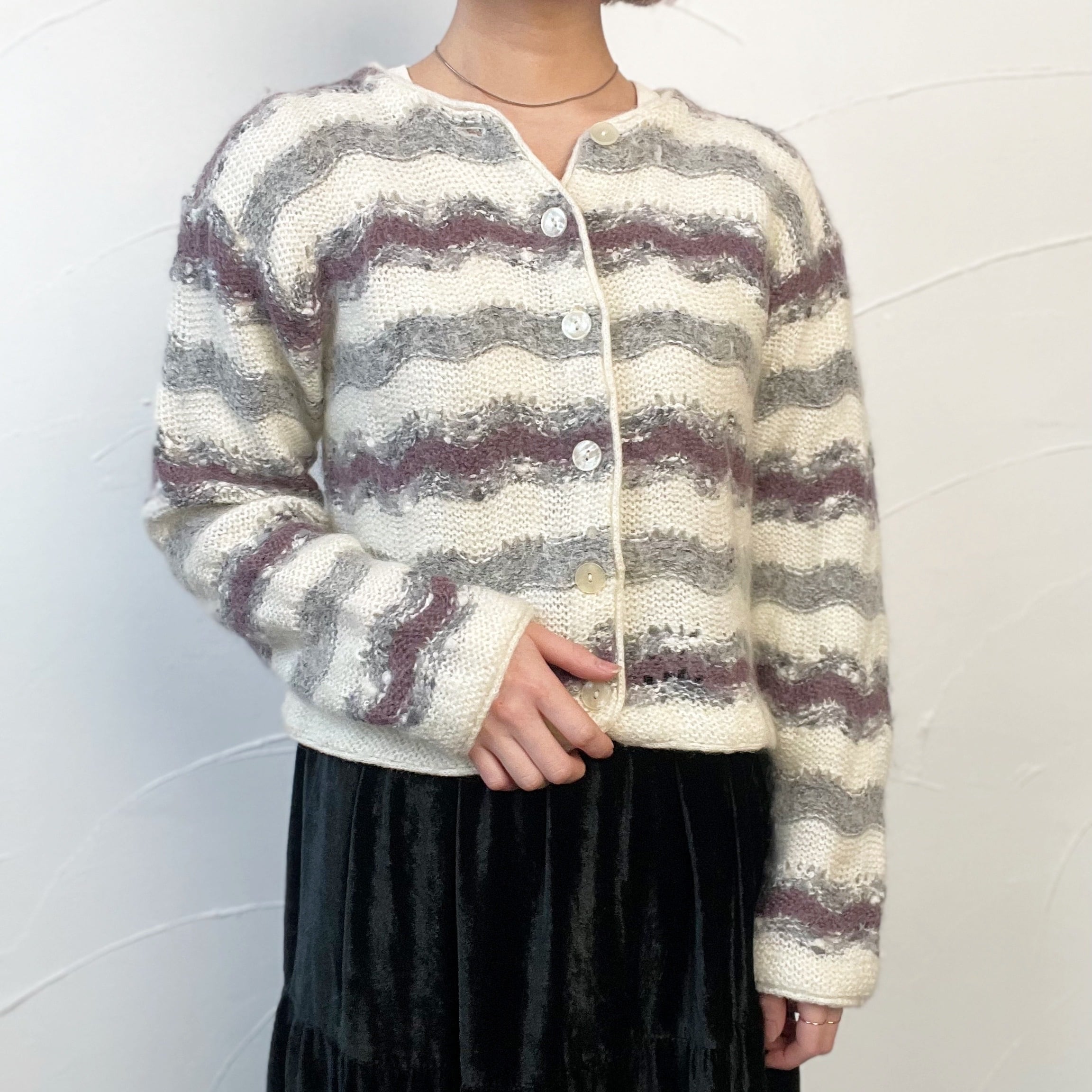 【Ladies】Mohair knit cardigan / 古着 モヘア混 ニットカーディガン ショート丈