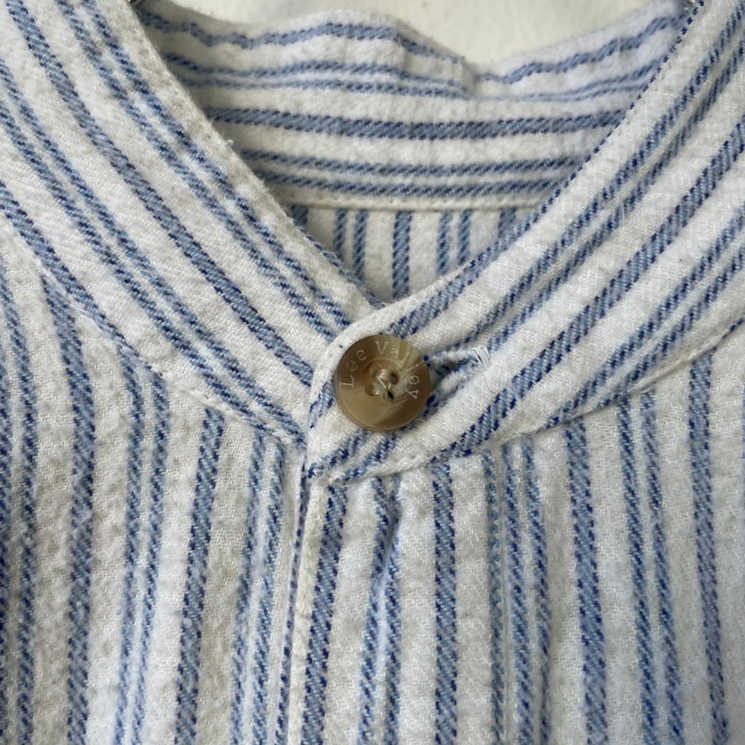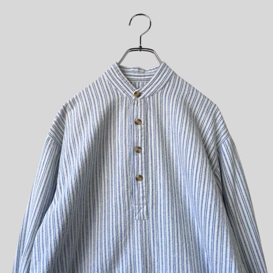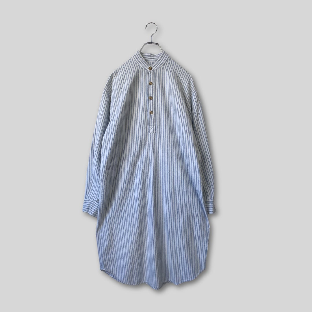 【Ladies】Grandpa stripe shirt / 古着 グランパシャツ ストライプ ブルー ネル生地