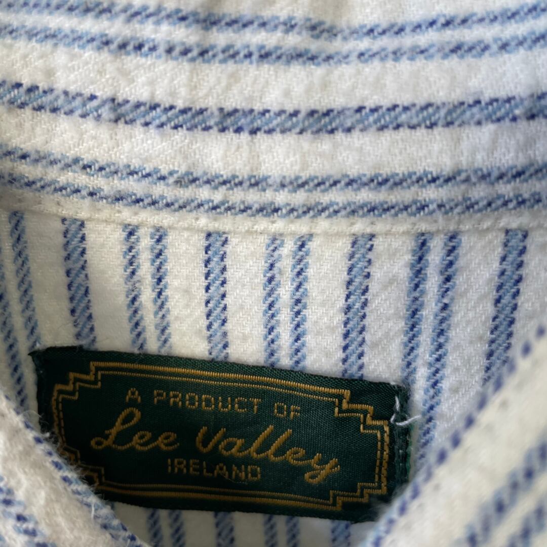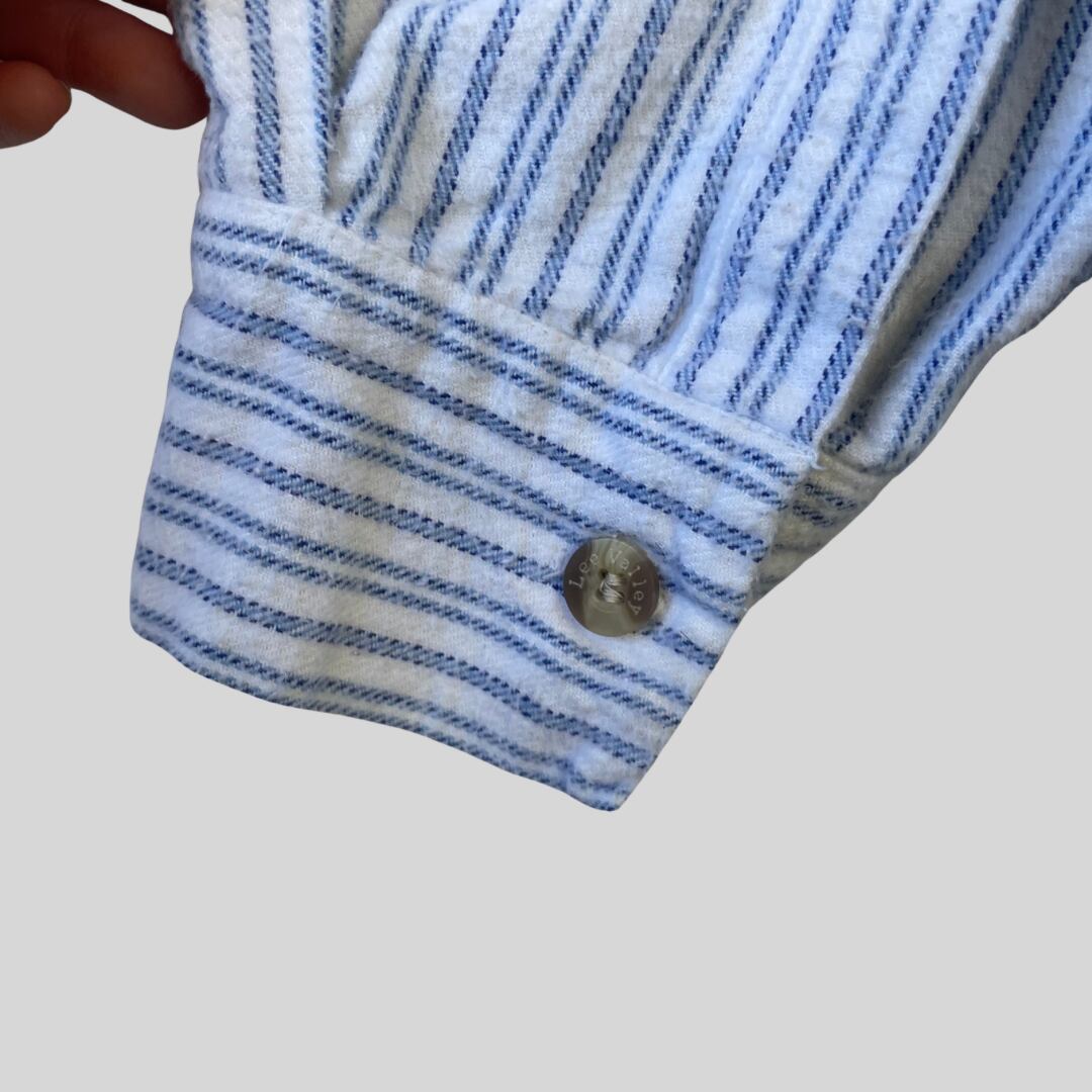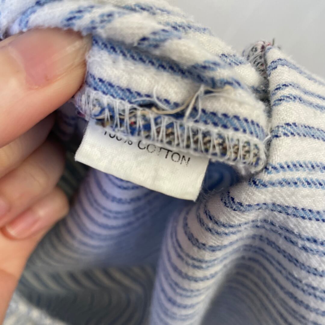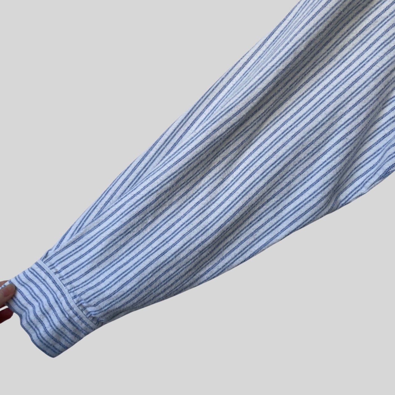 【Ladies】Grandpa stripe shirt / 古着 グランパシャツ ストライプ ブルー ネル生地