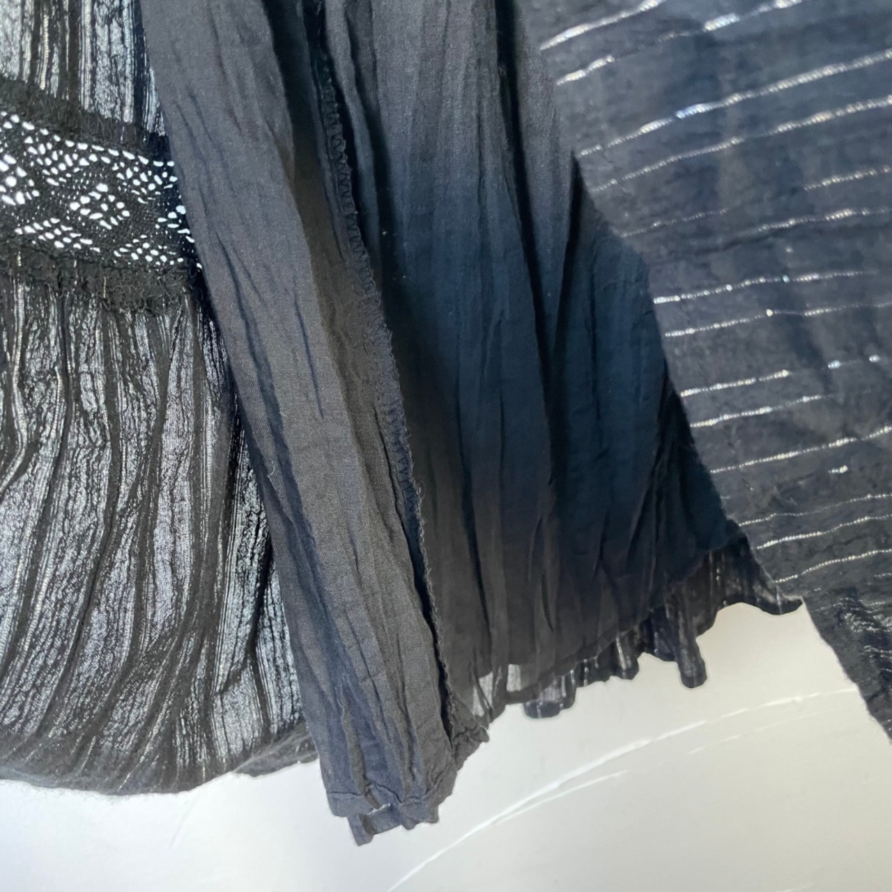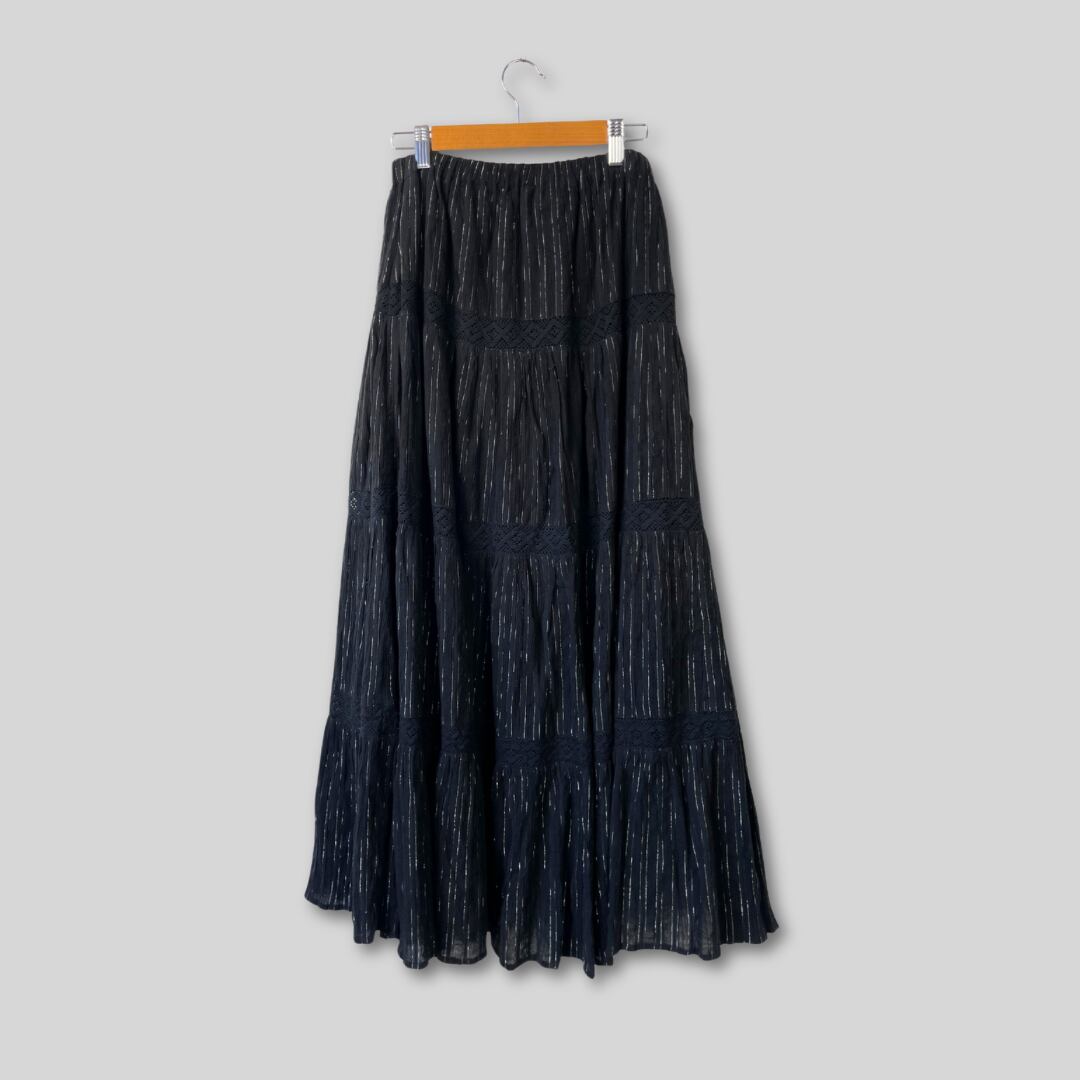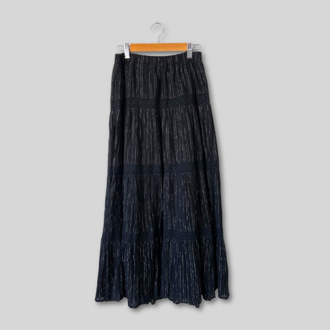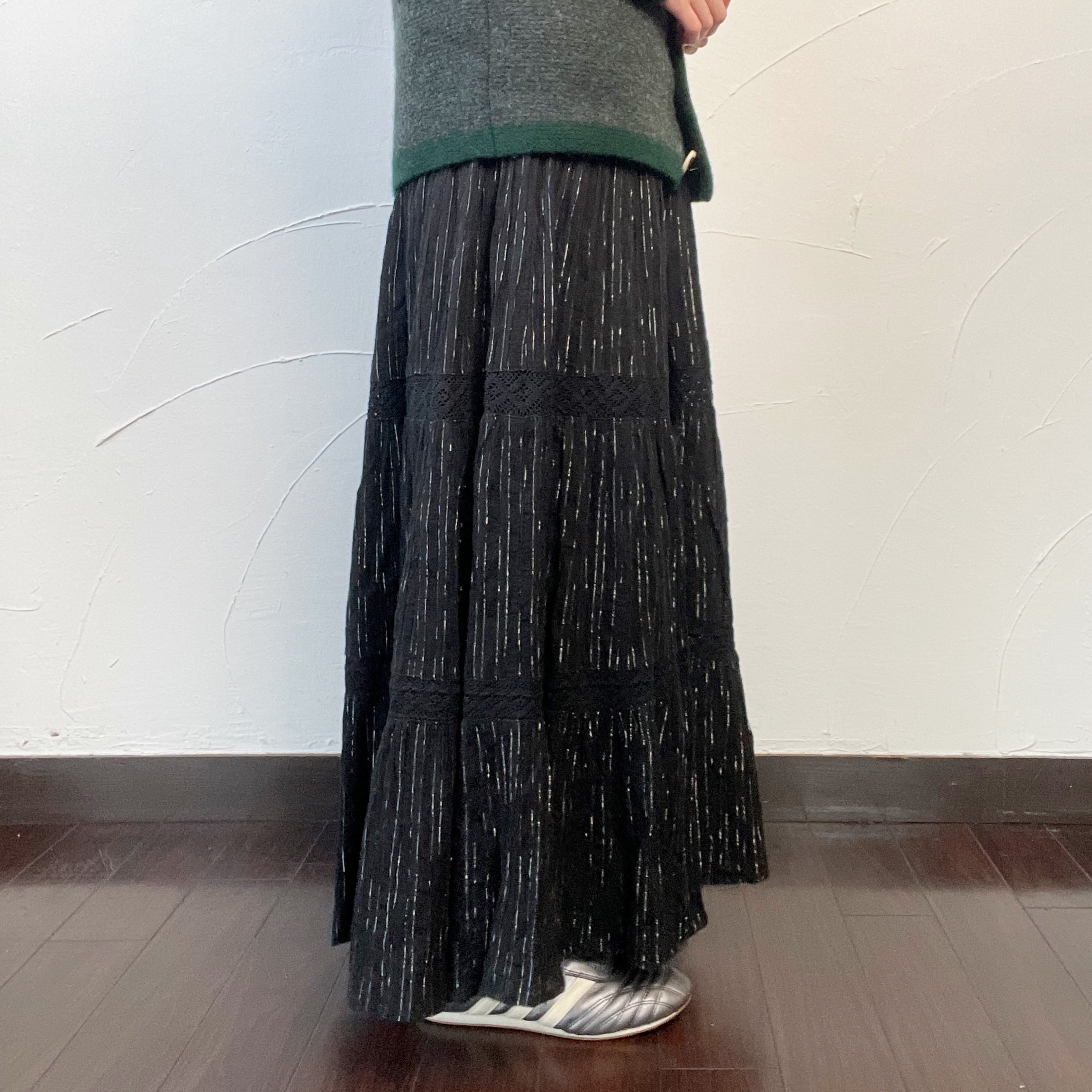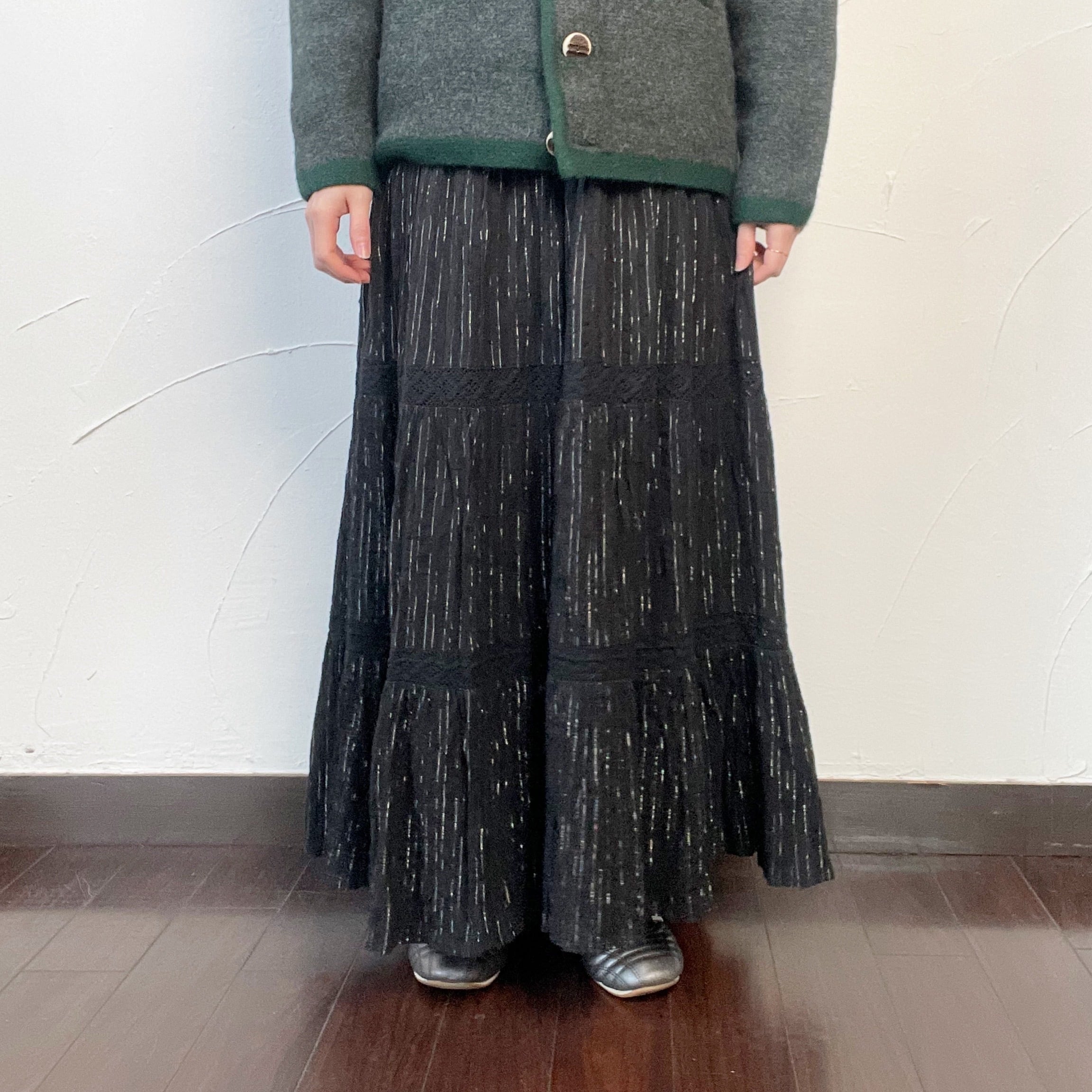 【Ladies】Gauze flair skirt / 古着 銀糸 ガーゼ素材 スカート ブラック