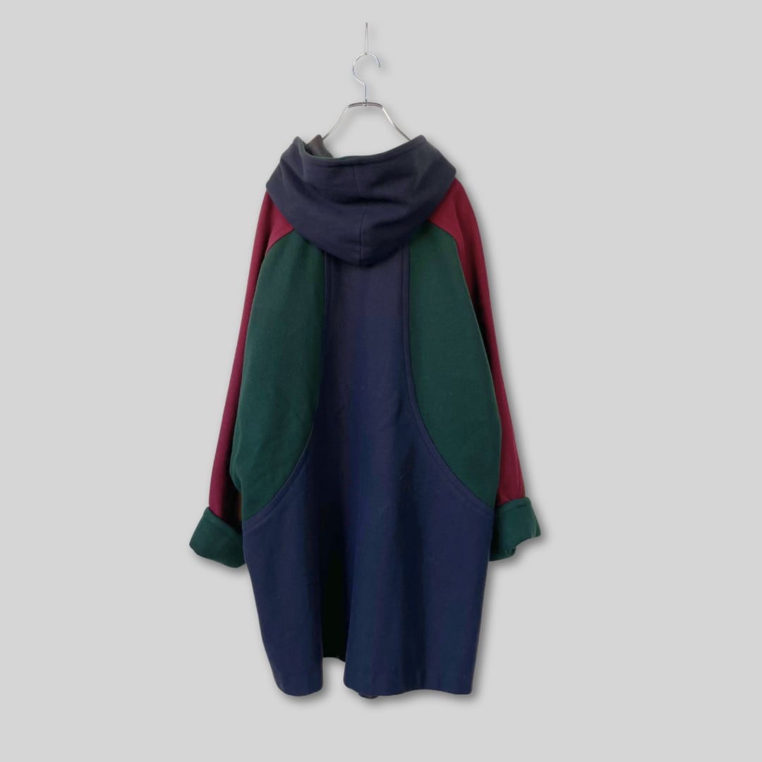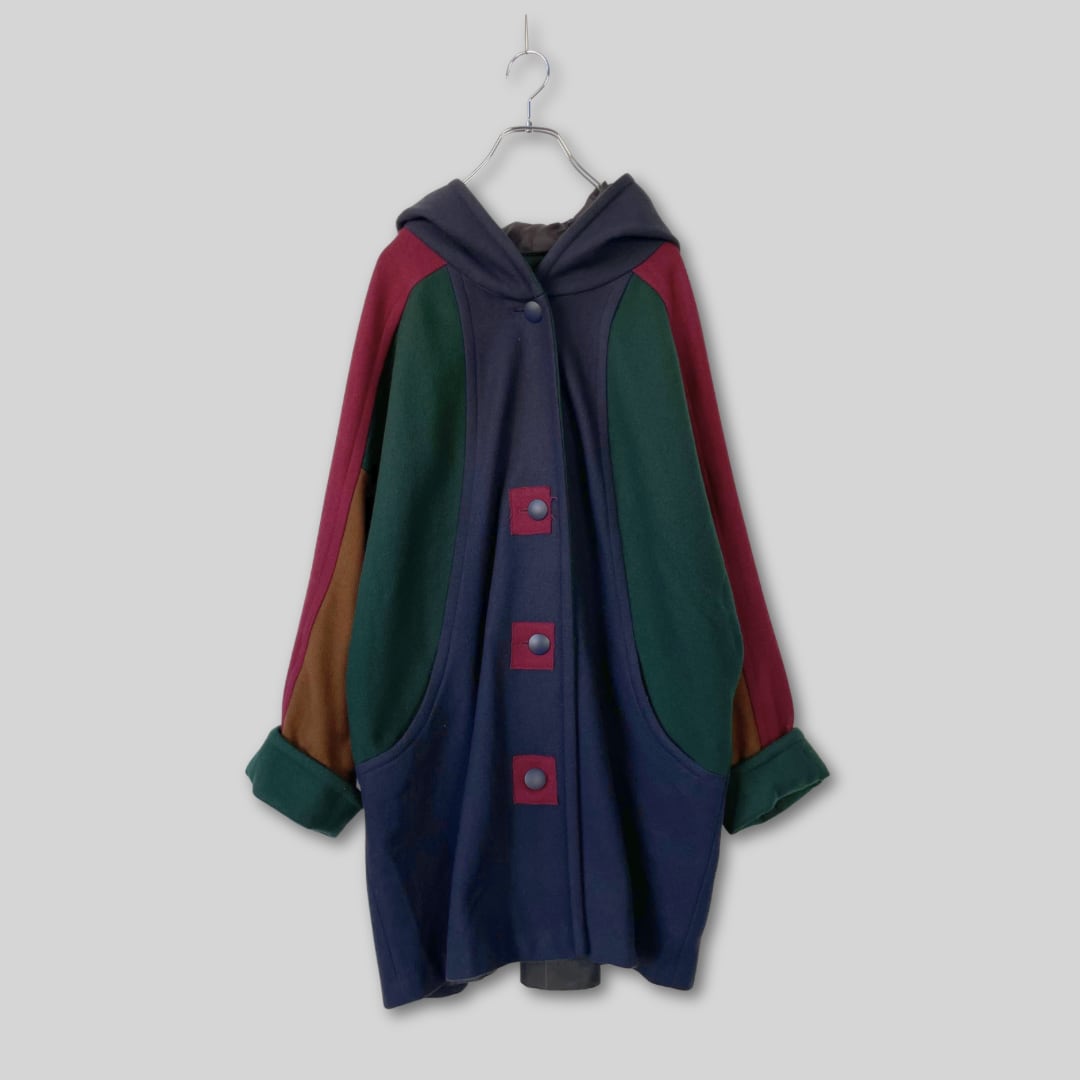 Multi color wool coat / 古着 マルチカラー フード付き ウールコート