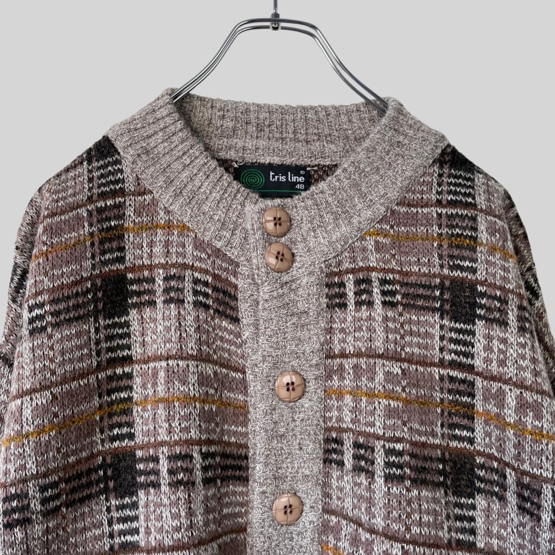 Plaid knit cardigan / 古着 チェック柄 ニットカーディガン