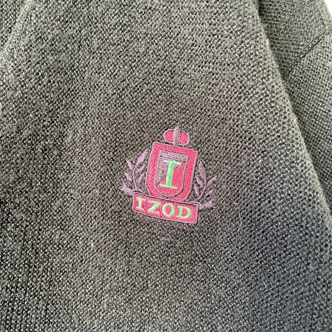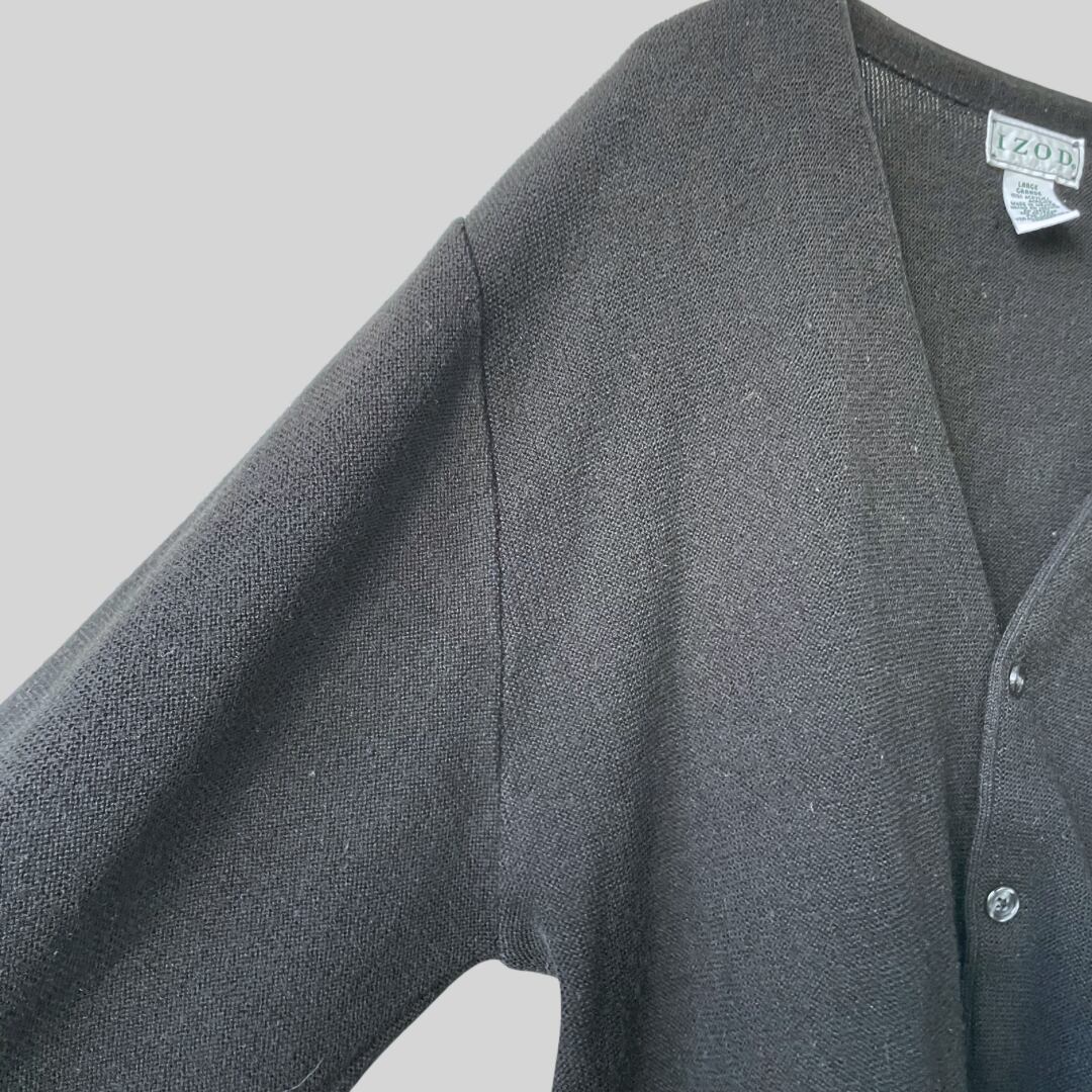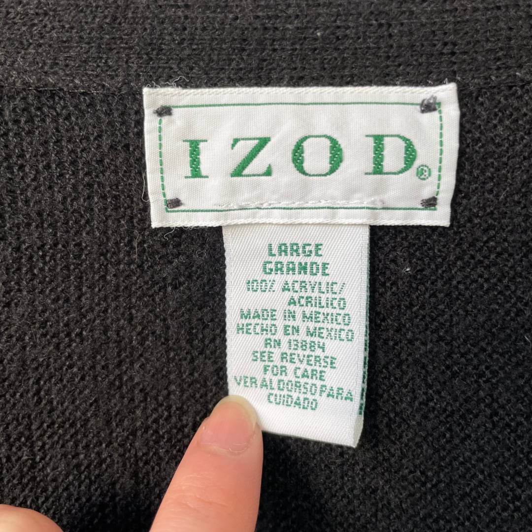 【YouTube掲載】“IZOD” acrylic knit cardigan / 古着 アイゾッド アクリルニットカーディガン ブラック