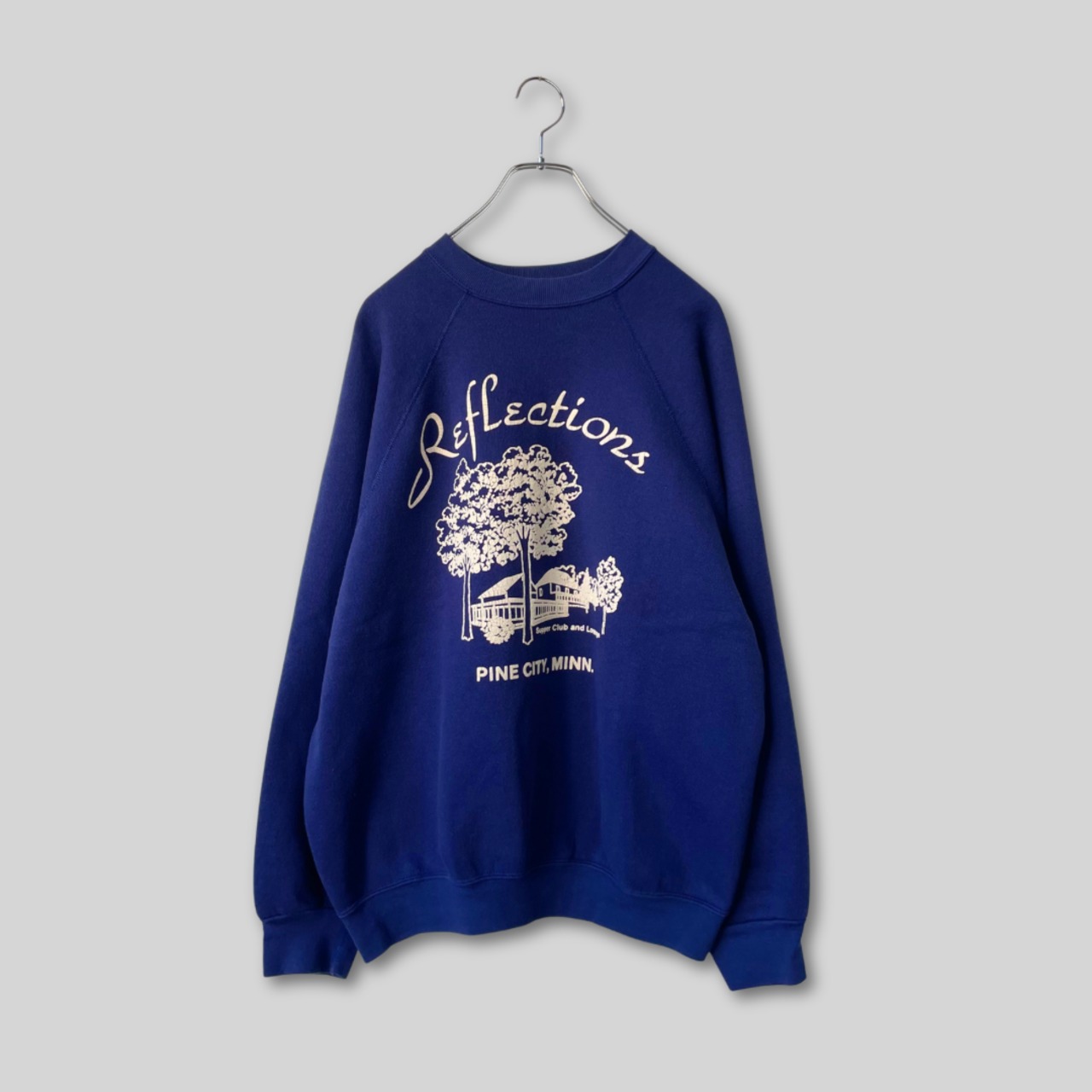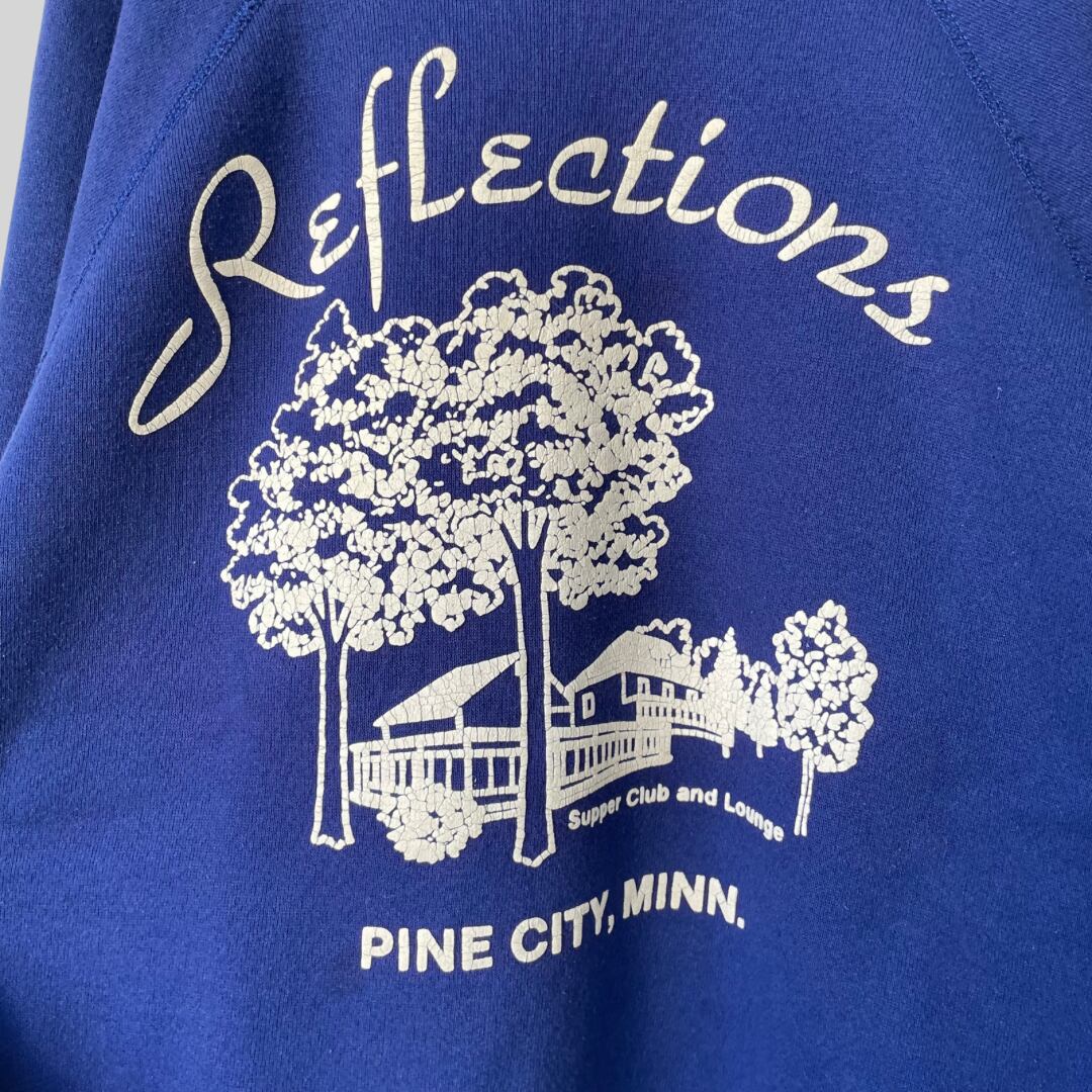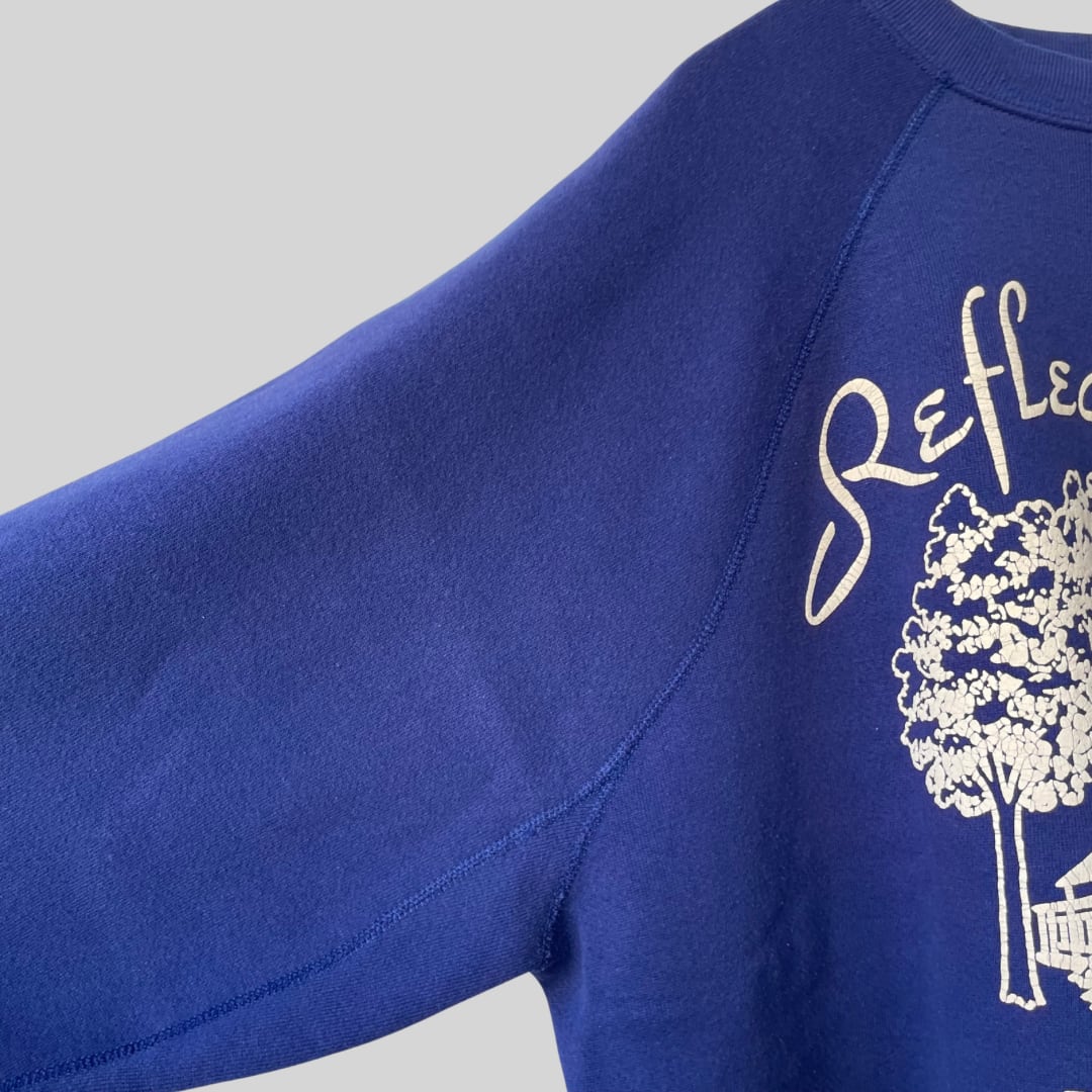 【YouTube掲載】80s printed sweatshirt / 古着 プリントスウェット 発泡プリント ラグランスリーブ ネイビーブルー