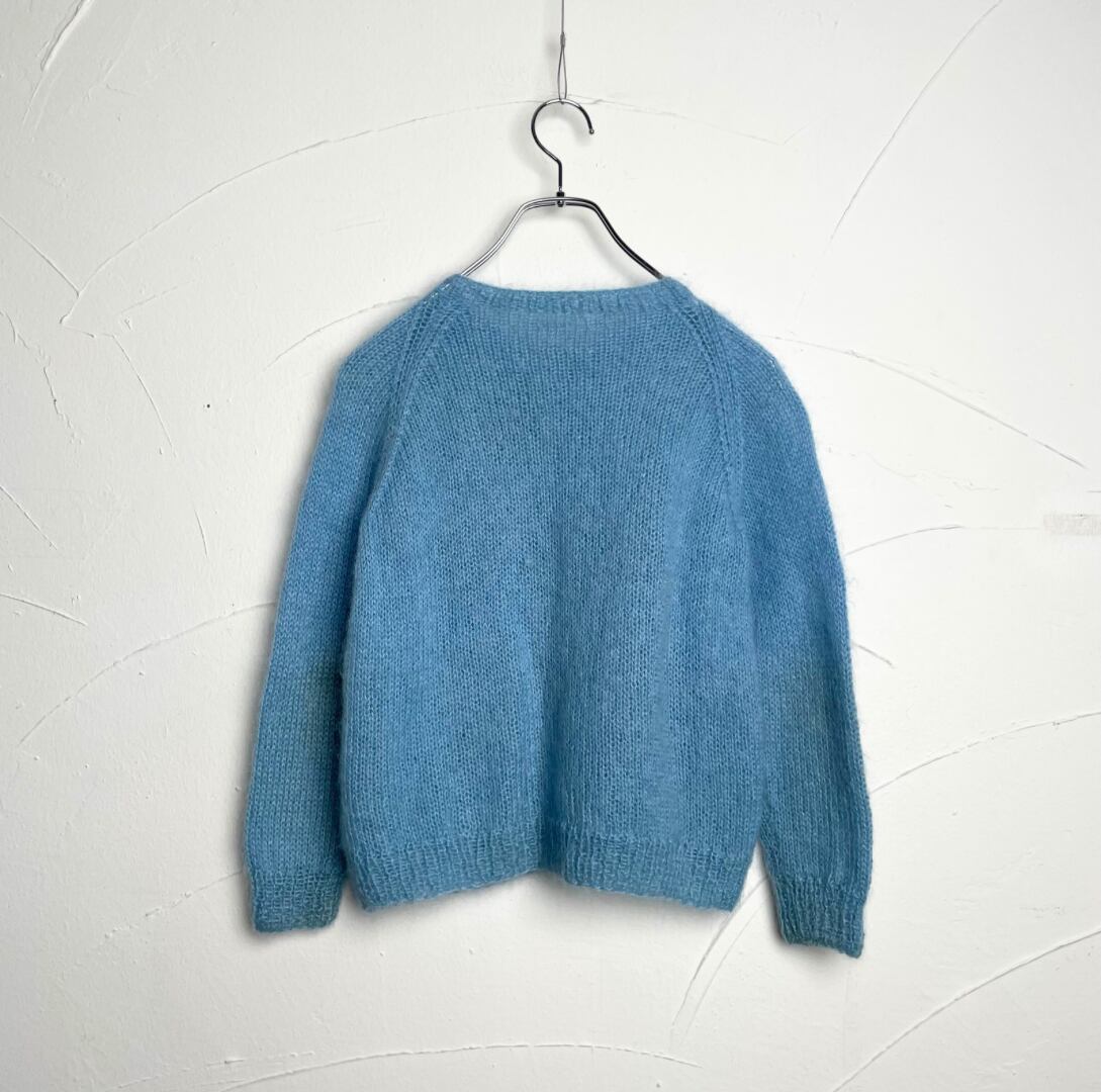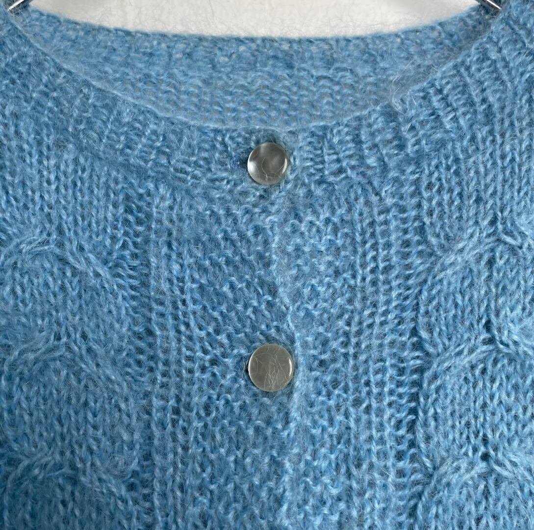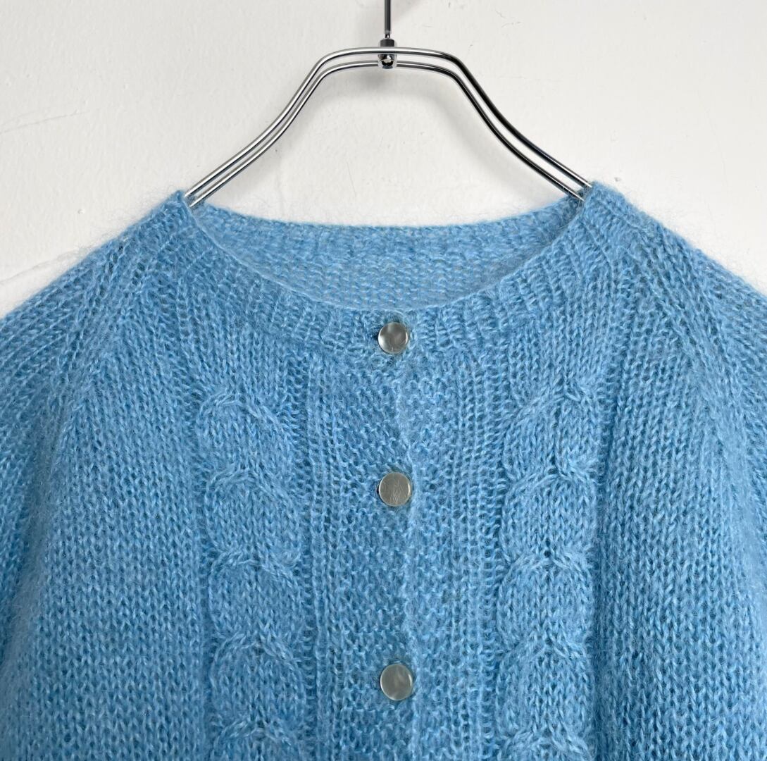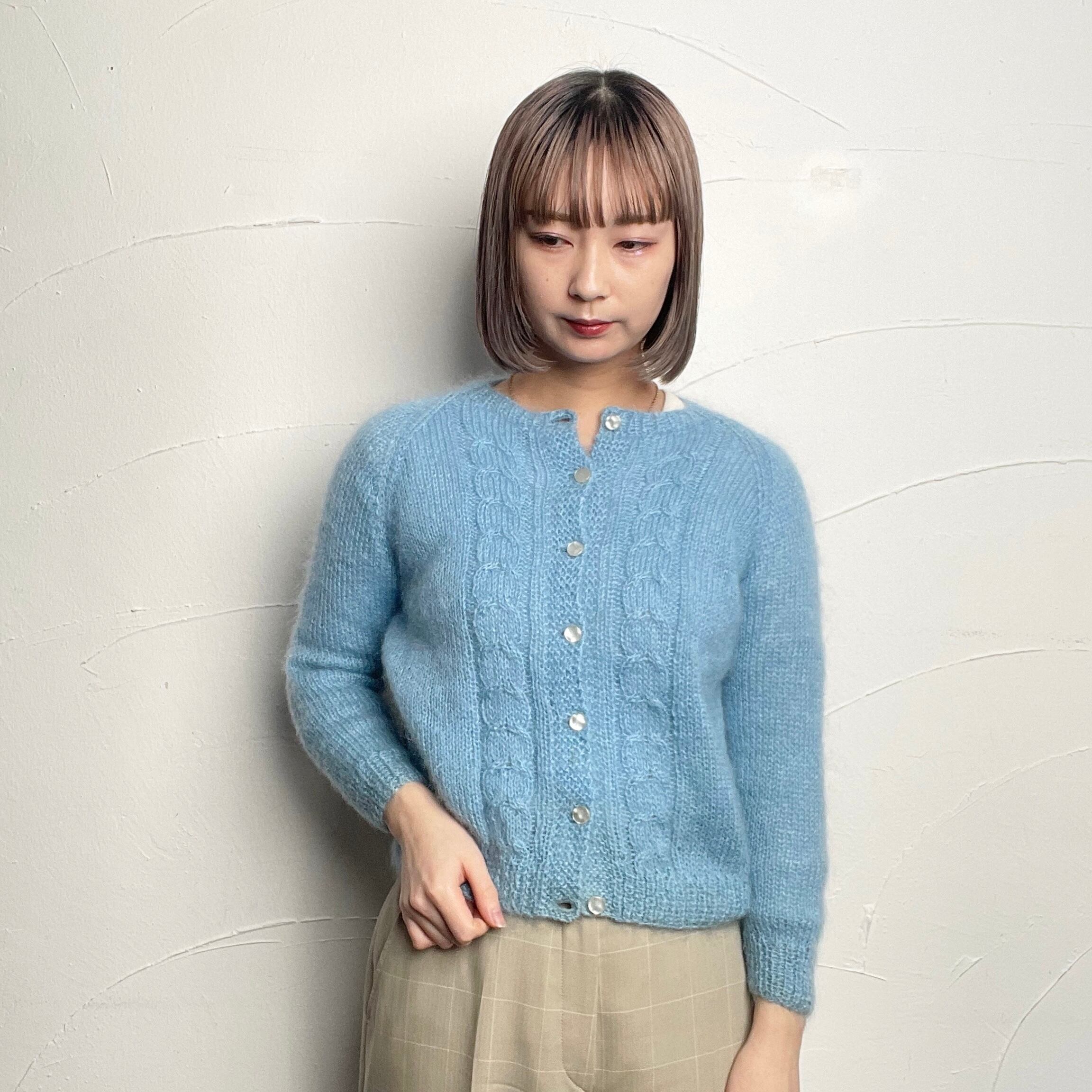 【Ladies】Mohair knit cardigan / 古着 モヘア ニットカーディガン 水色