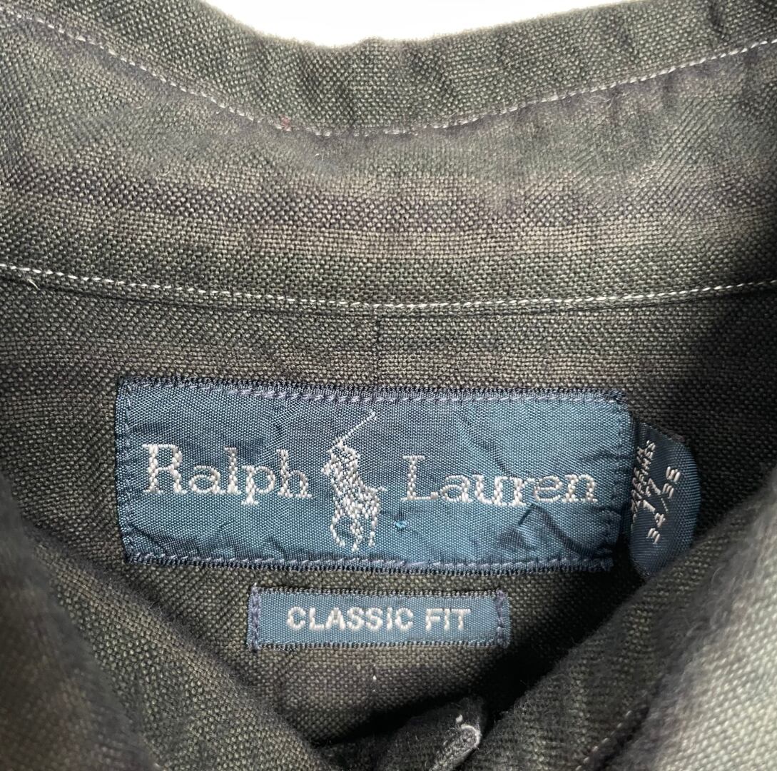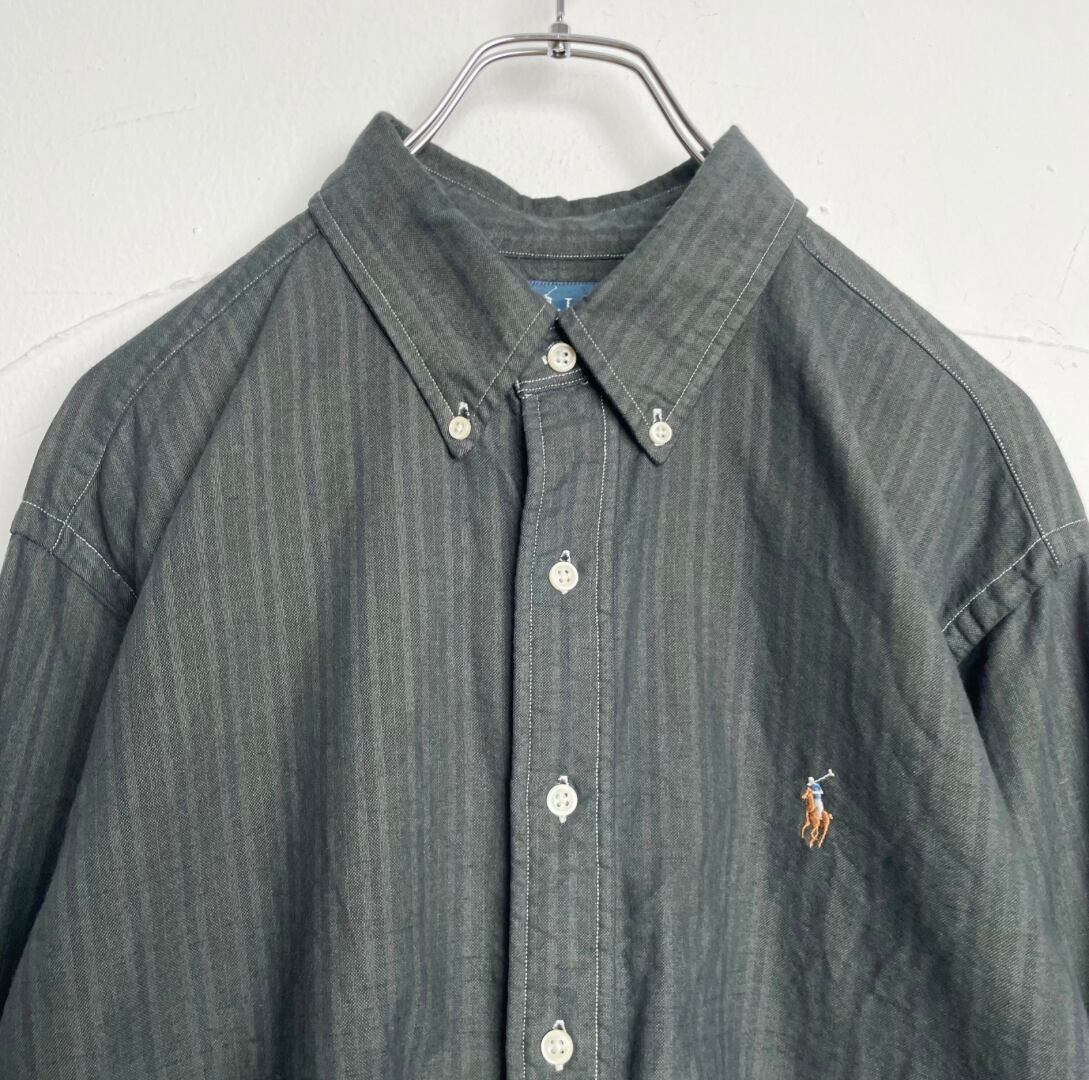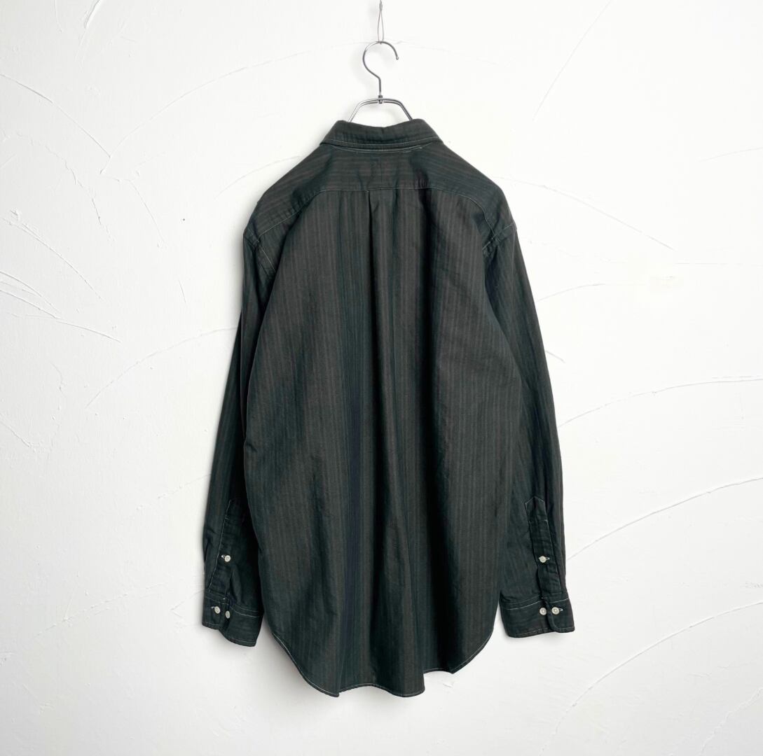 “Ralph Lauren” over dyed shirt / 古着 ラルフローレン ブラック後染め ストライプシャツ
