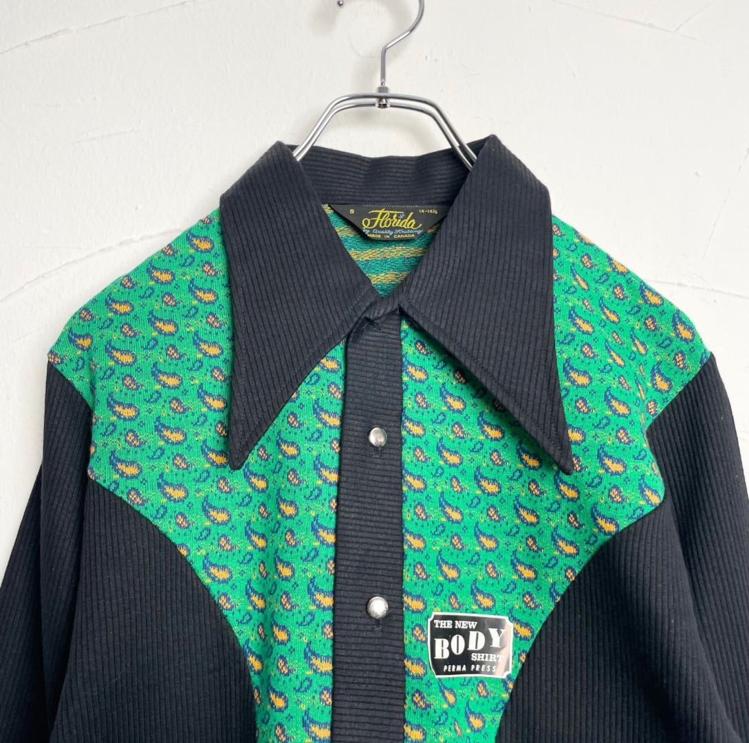 70s design shirt / 古着 デザインシャツ ハーフボタン デッドストック カナダ製