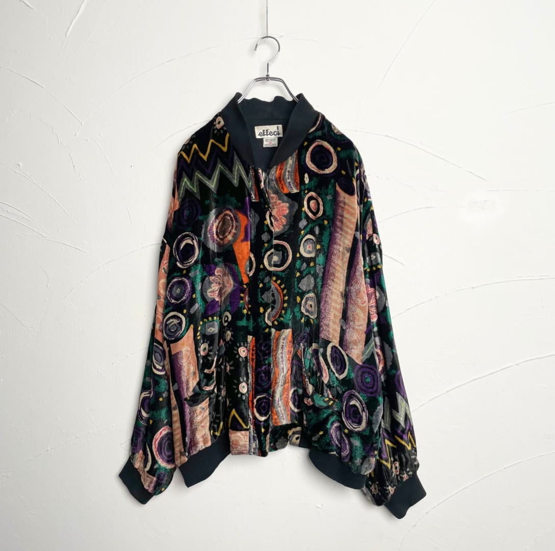 Patterned velvet blouson / 古着 柄ブルゾン ベルベット
