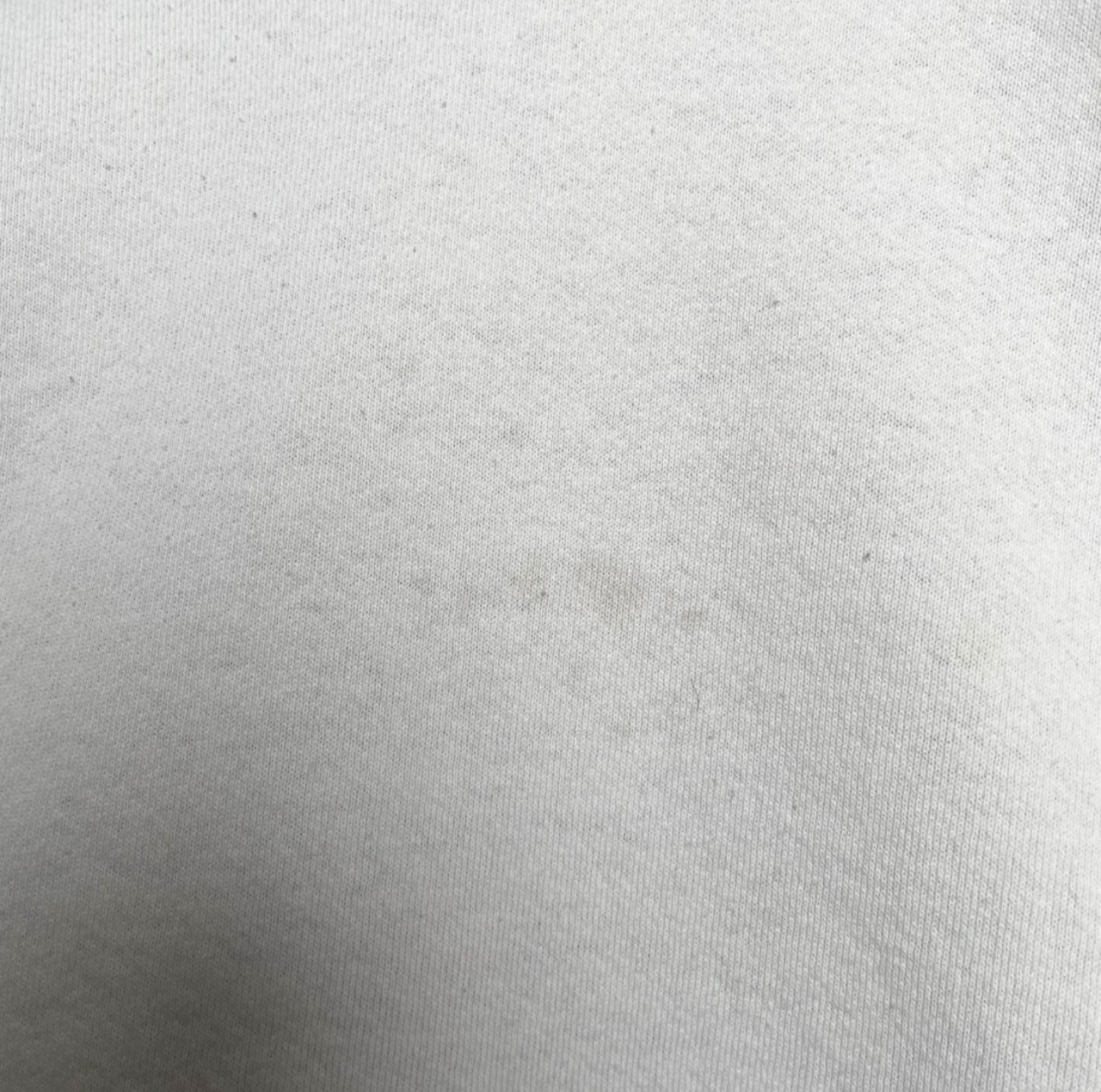 プリント下部(画像3枚目)、背面左袖(画像7、8枚目)に汚れが見られます。
