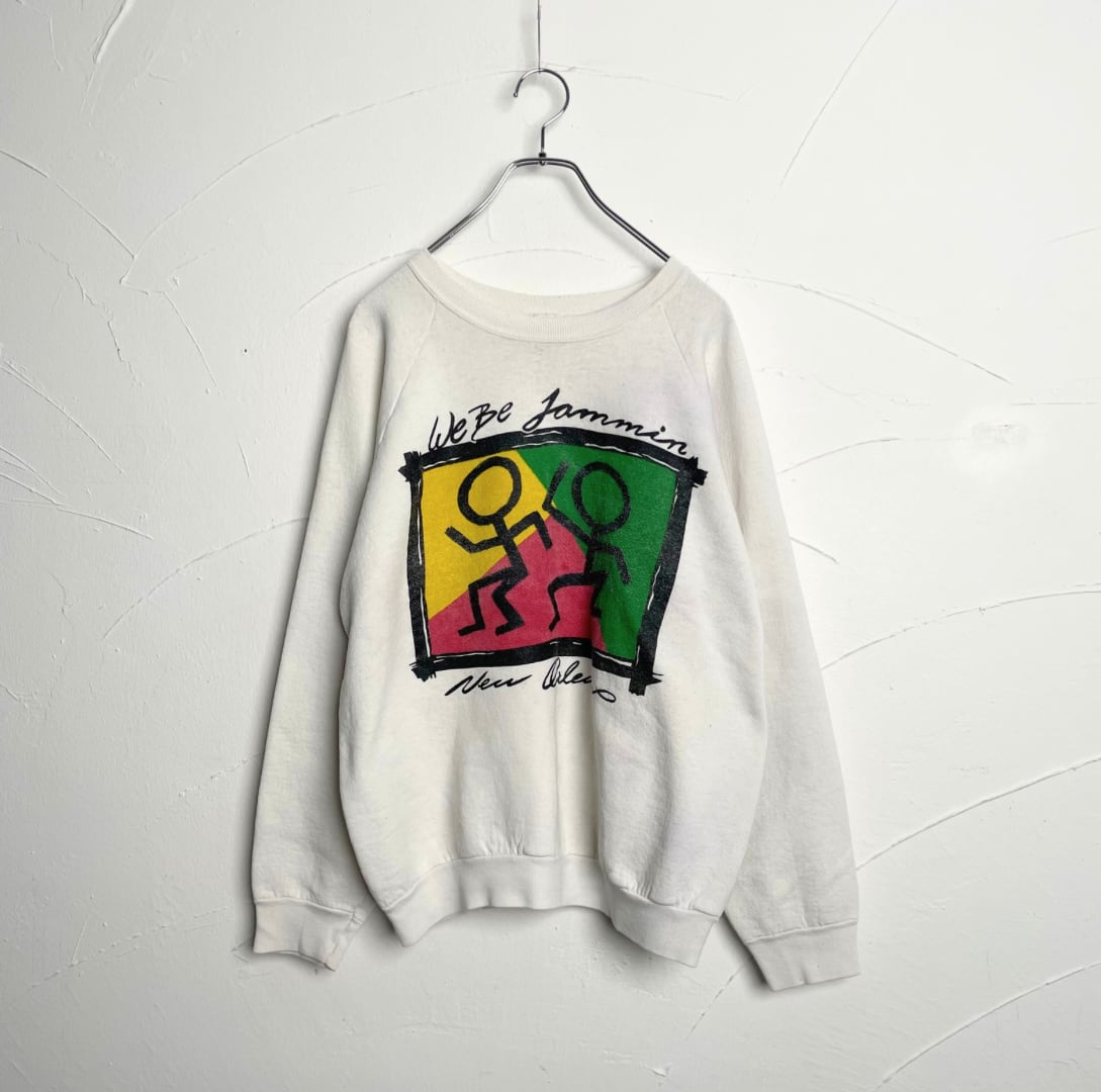 80-90s printed sweat shirt / 古着 フルーツオブザルーム プリントスウェット ラグラン アメリカ製