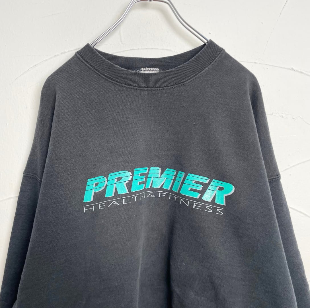 90s printed sweat shirt / 古着 フルーツオブザルーム アメリカ製 ロゴスウェット ブラック
