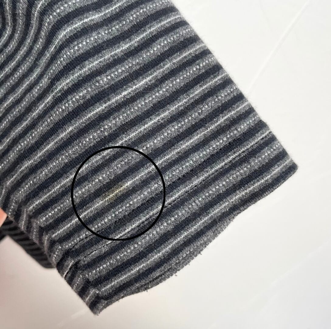左袖口(画像5枚目)にシミが見られます。