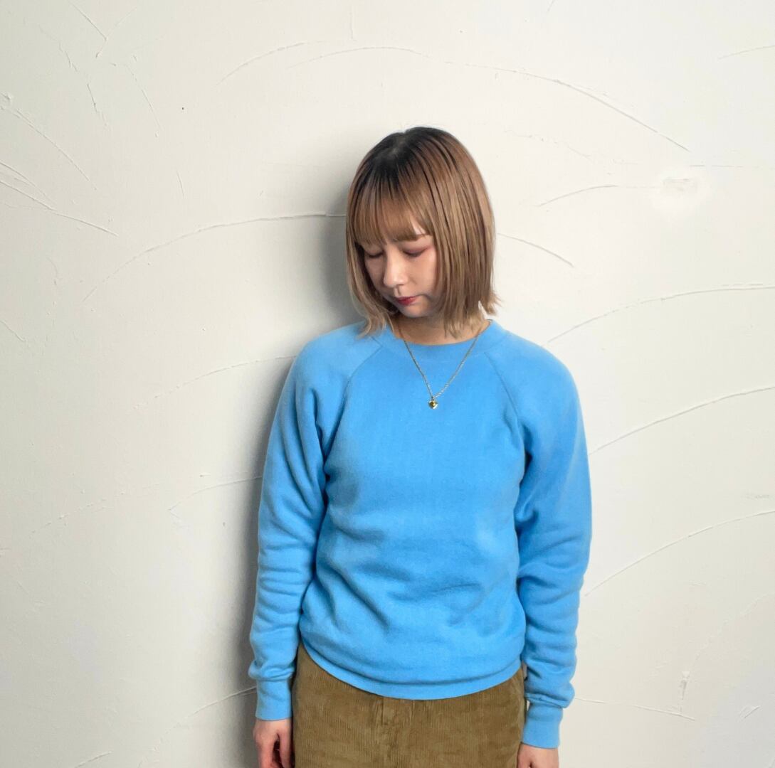 【Ladies】80-90s raglan sleeve sweat shirt / 古着 タルテックス ラグランスウェット 水色