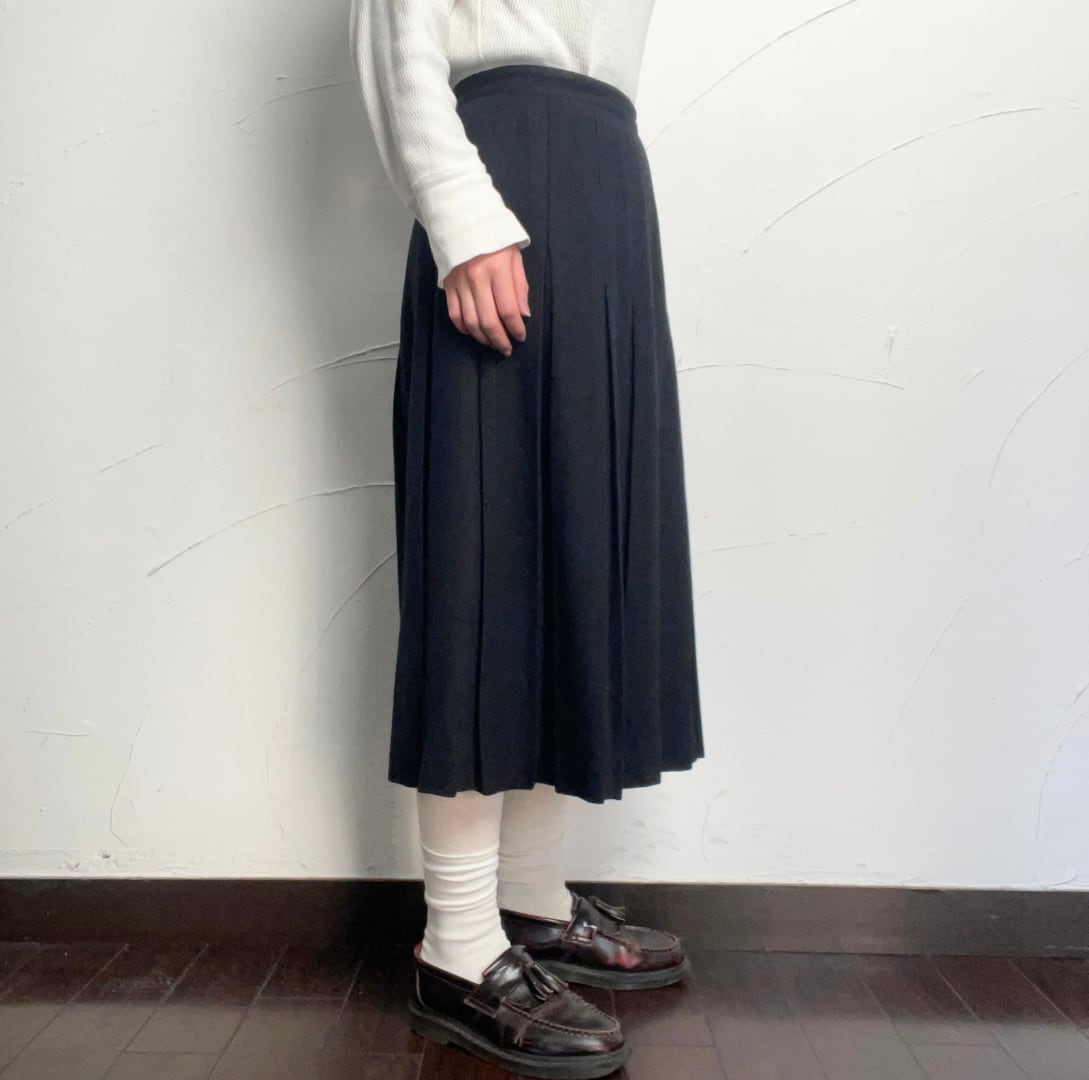 【YouTube掲載】Wool pleats skirt / 古着 ウール プリーツスカート ブラック