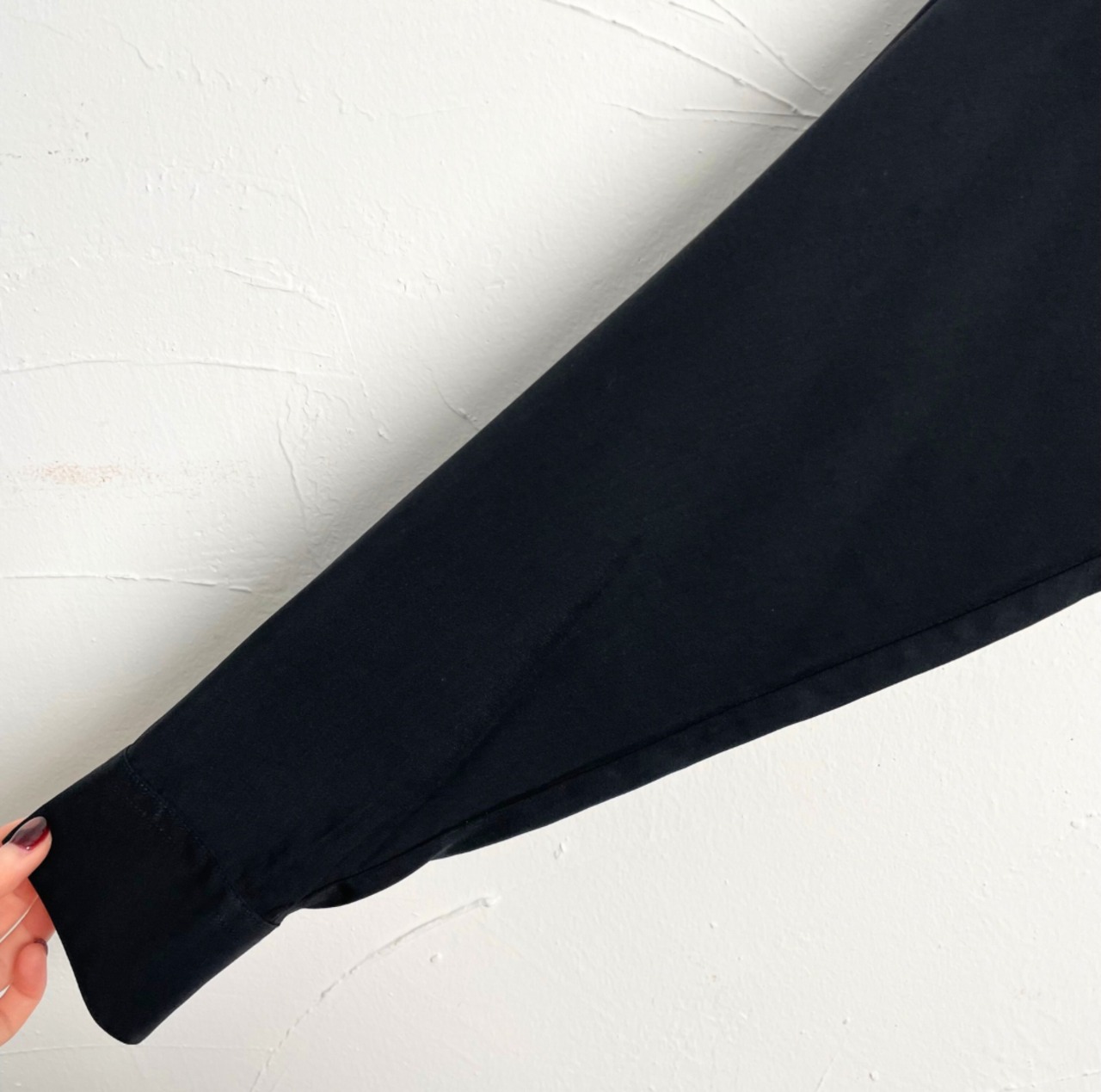 タグの欠損により表記は不明ですがポリエステルとレーヨンの混紡のような生地感です。