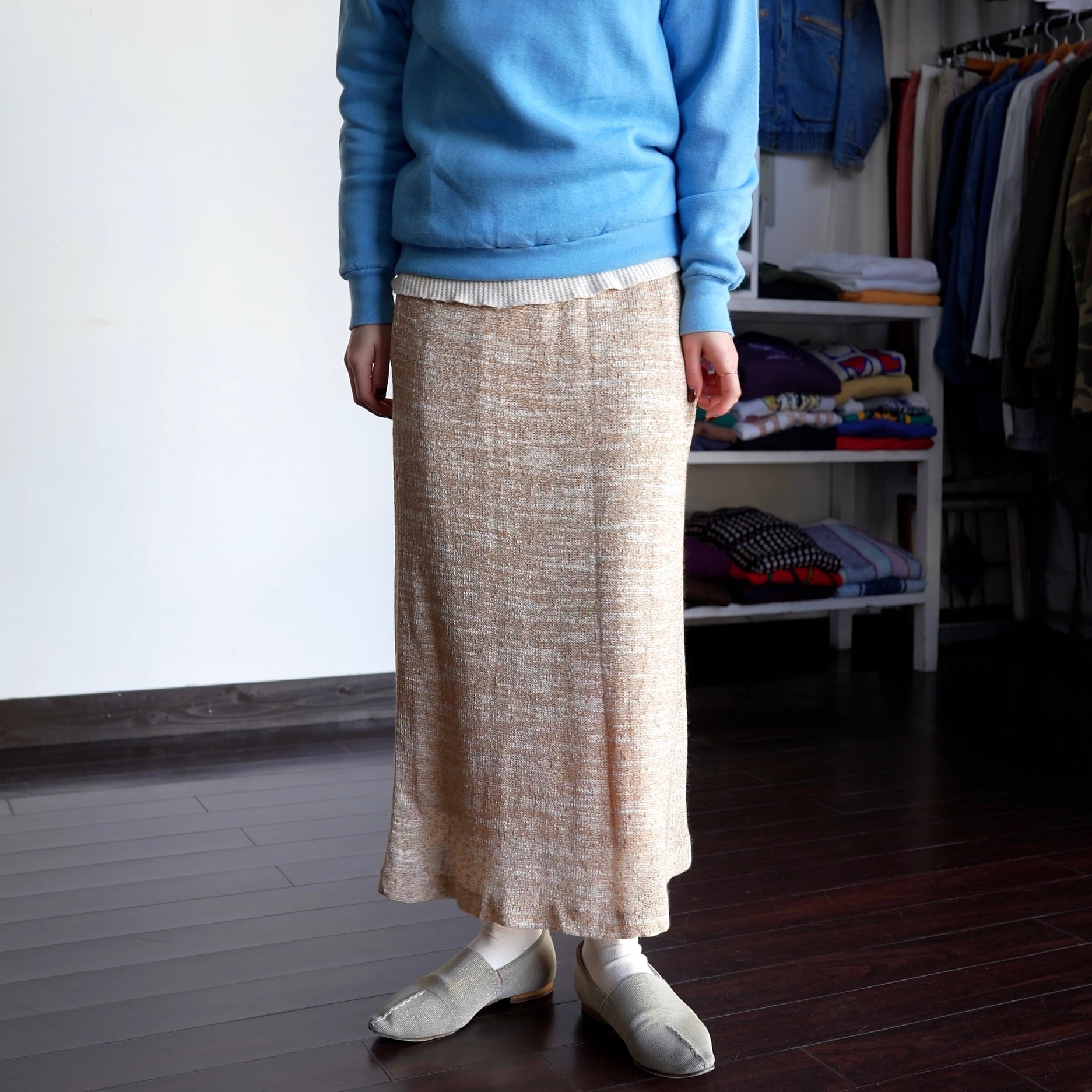 【YouTube掲載】Knit skirt / 古着 ニットスカート コットン ラミー ベージュ カナダ製