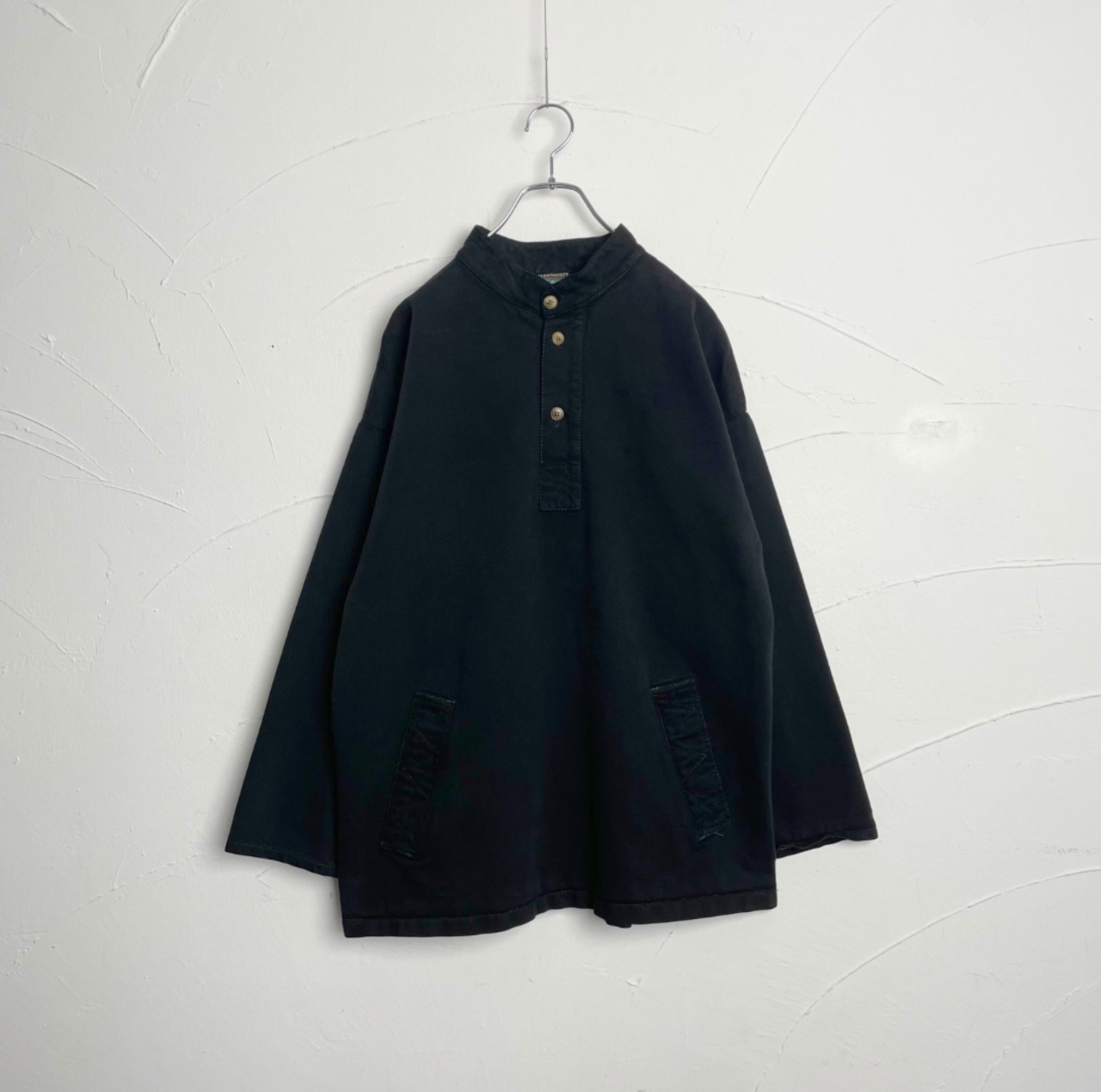 Over dyed half button pullover / 古着 ブラック後染め ハーフボタン プルオーバー
