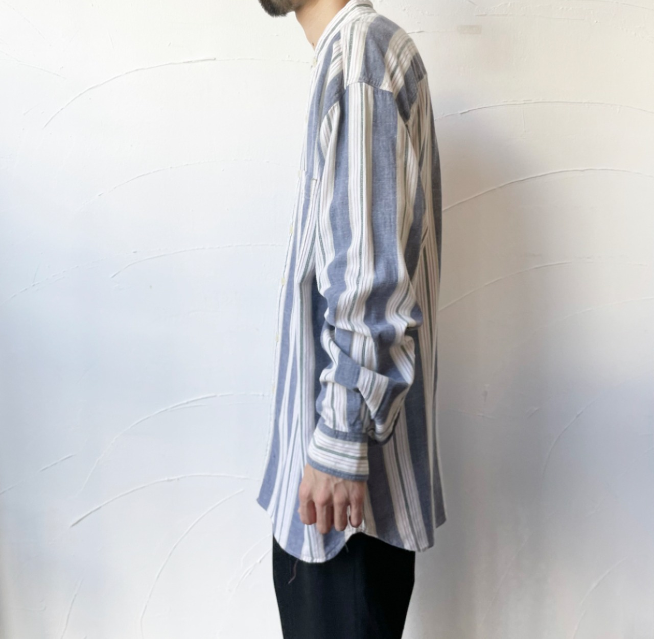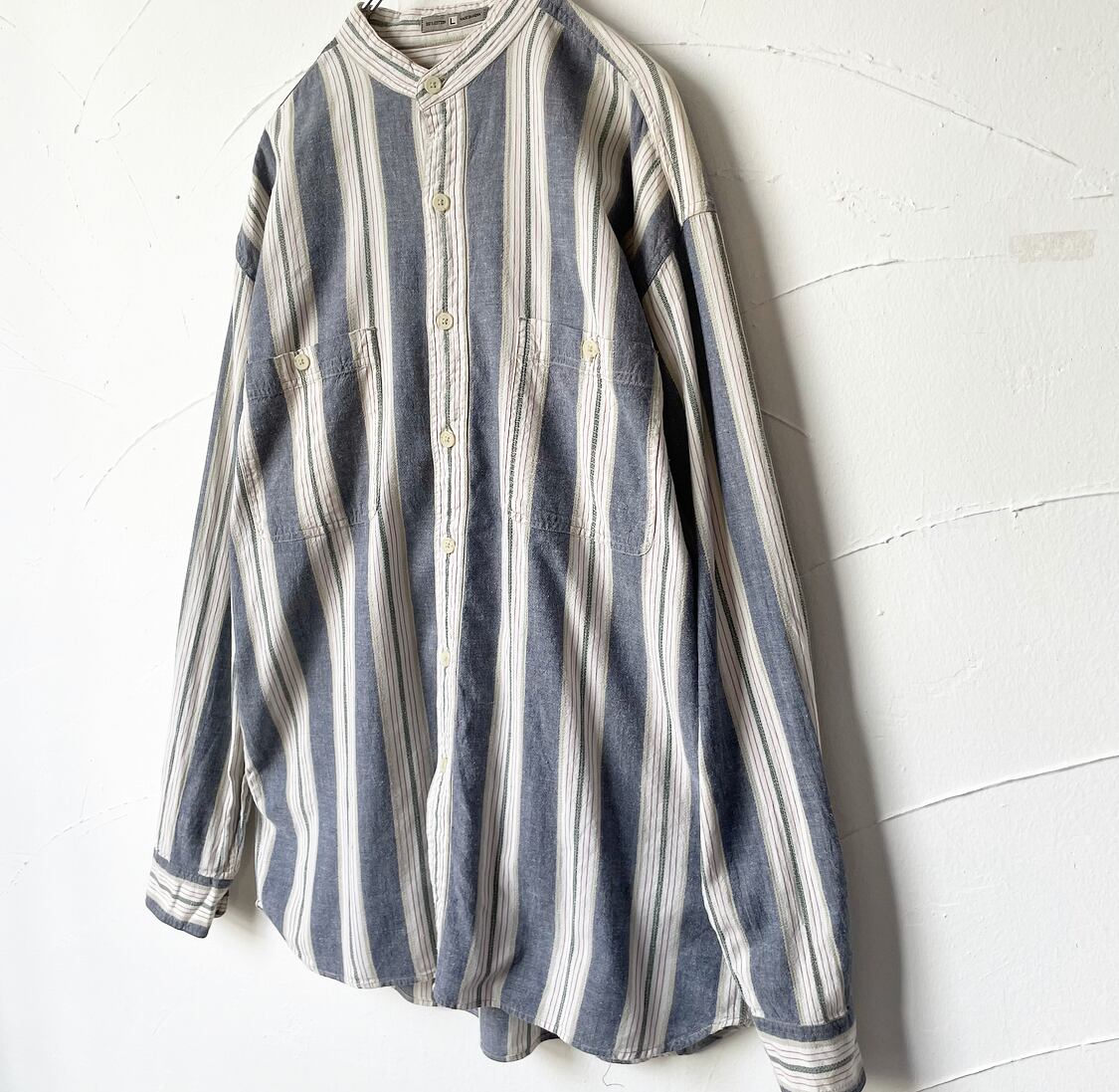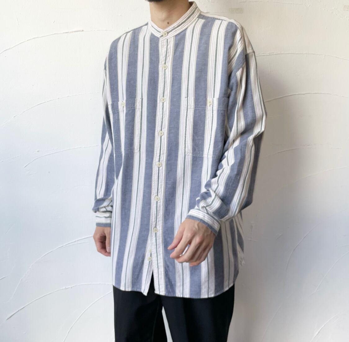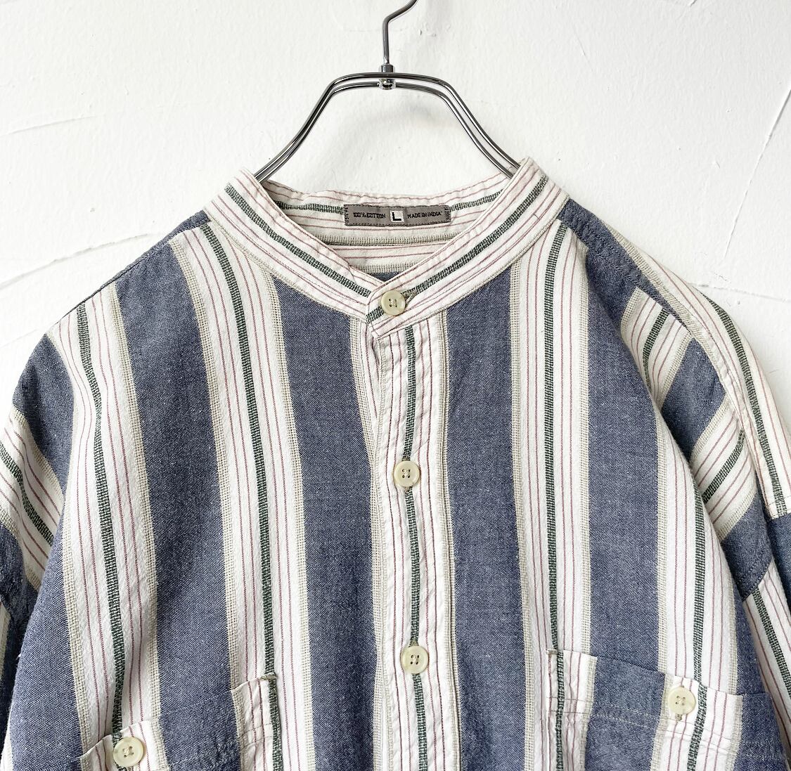 Band collar shirt / 古着 バンドカラーシャツ ストライプ