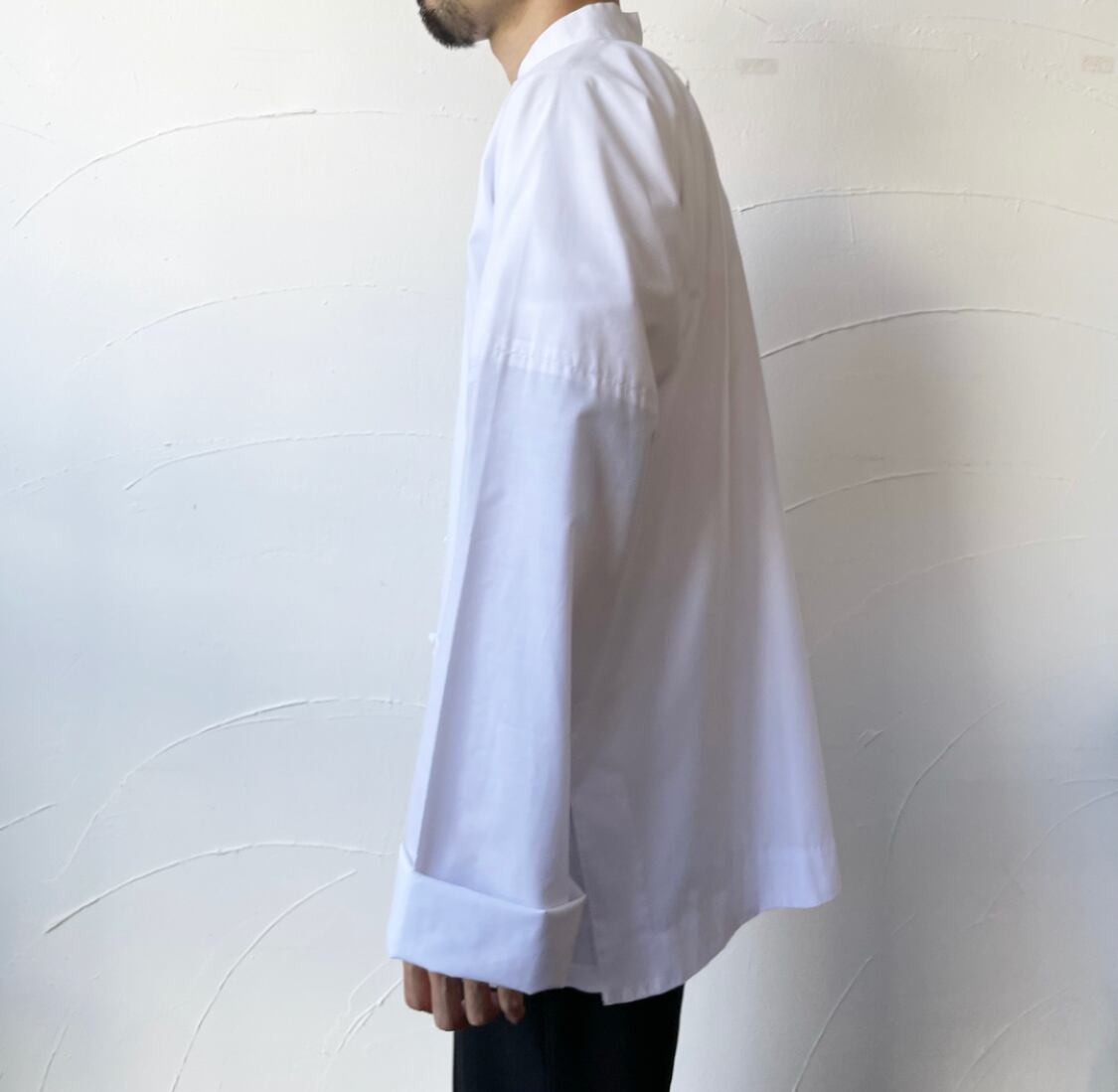ポリエステルとコットンのブロード生地が、真っ白なカラーと相まって清潔感のある印象。