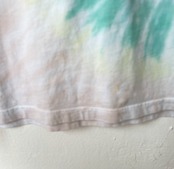 正面裾(画像5枚目)、背面右脇(画像7枚目)に汚れが見られ、襟元のリブがやや伸びています。
