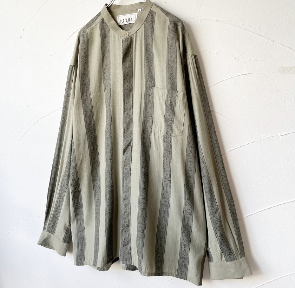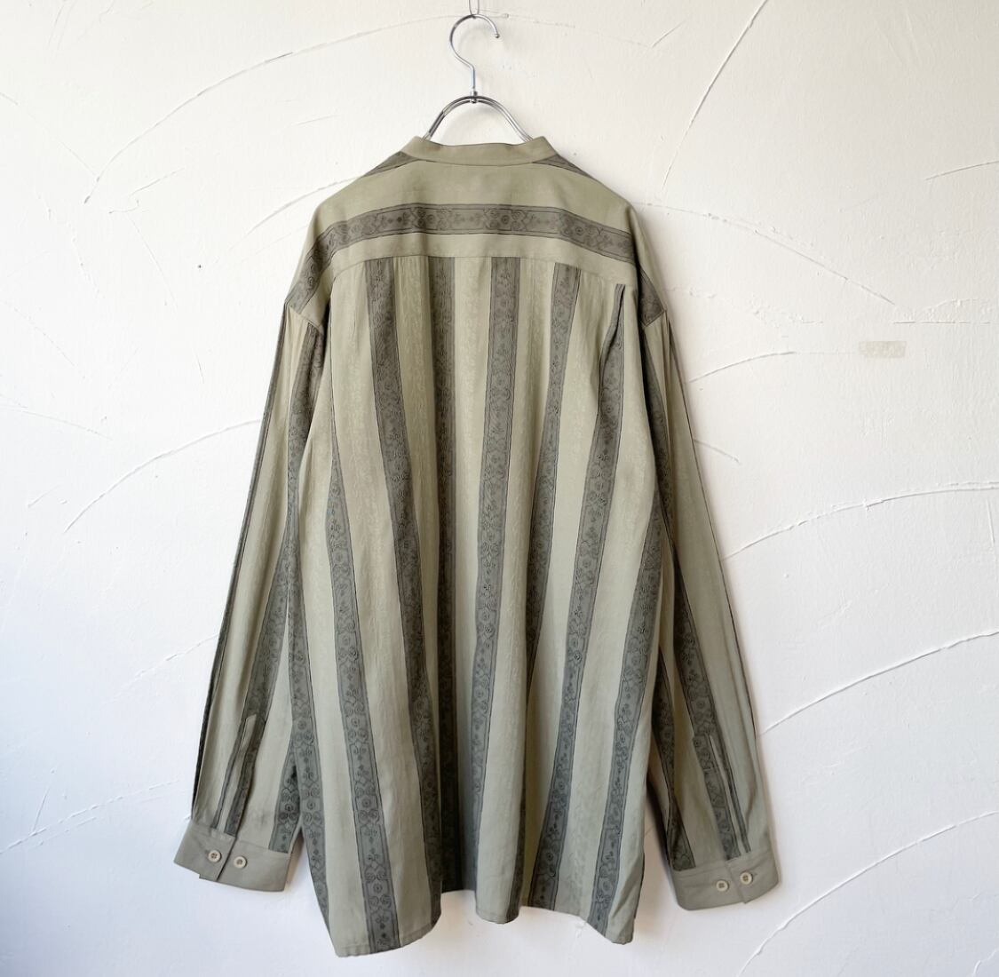 Jacquard design shirt / 古着 ジャガード 織り柄 デザインシャツ バンドカラー