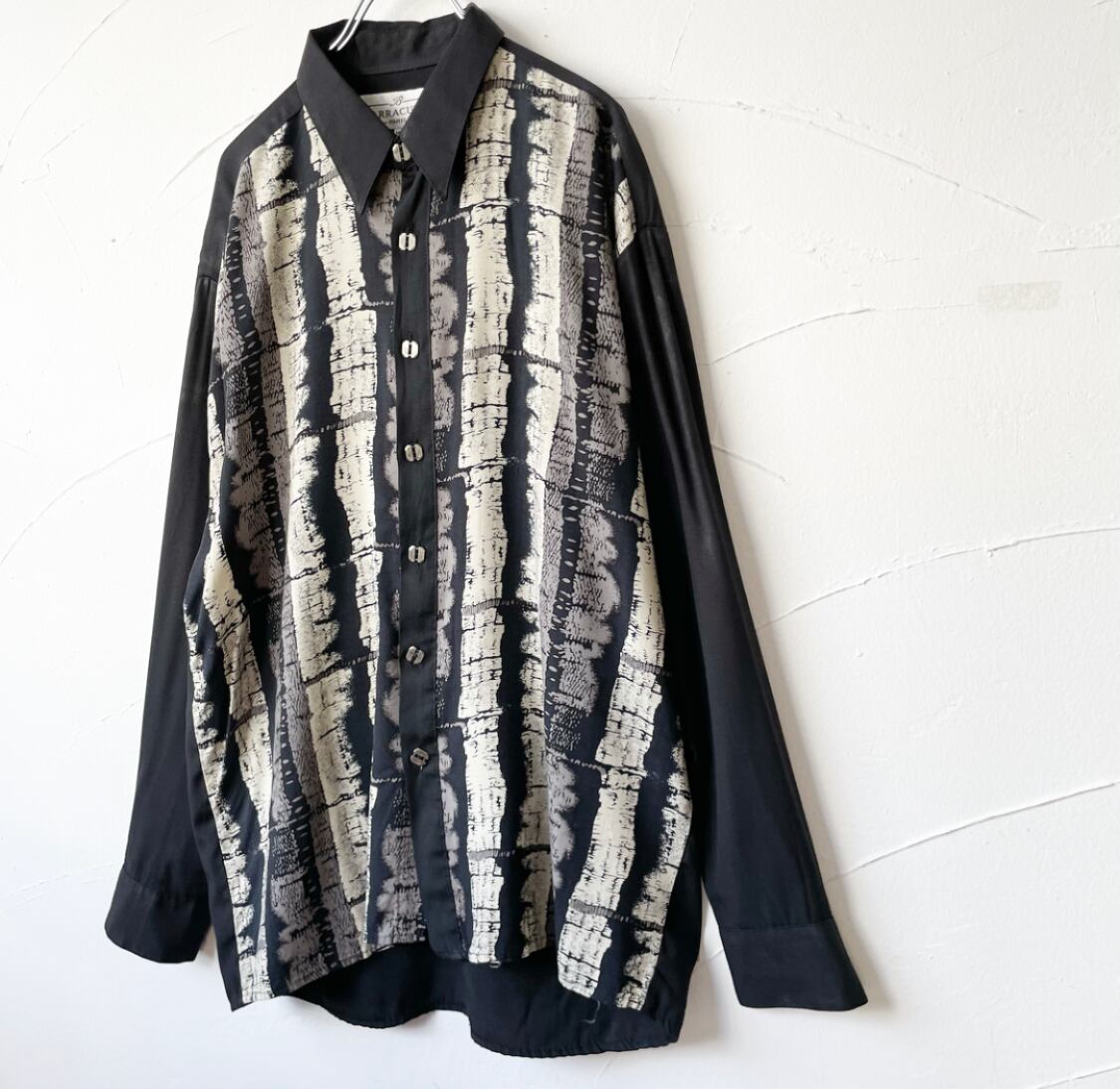 Patterned l/s shirt / 古着 柄シャツ デザイン ブラック