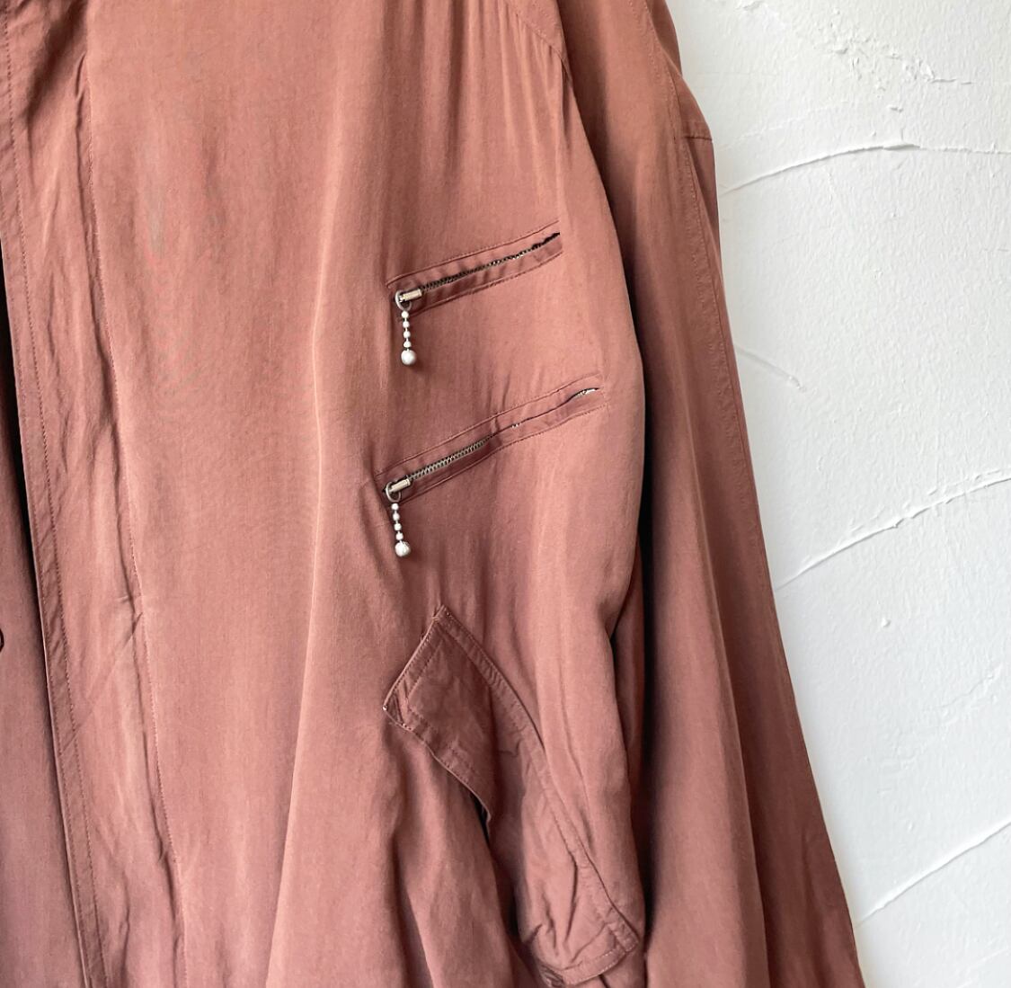 左袖の裏地(画像9枚目)に穴あき・破れが見られます。