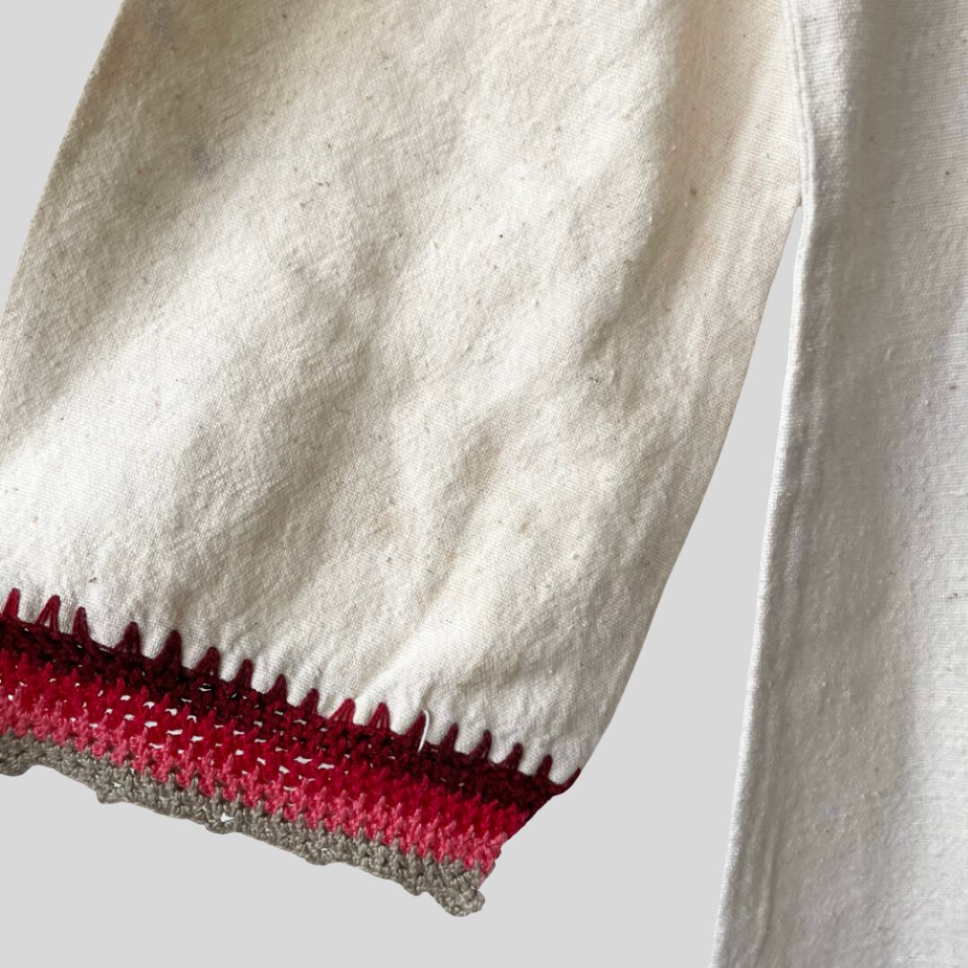レースアップになった胸元や裾のサイドスリット、ざらつきのある生地感などがエスニックな雰囲気も感じさせます。
