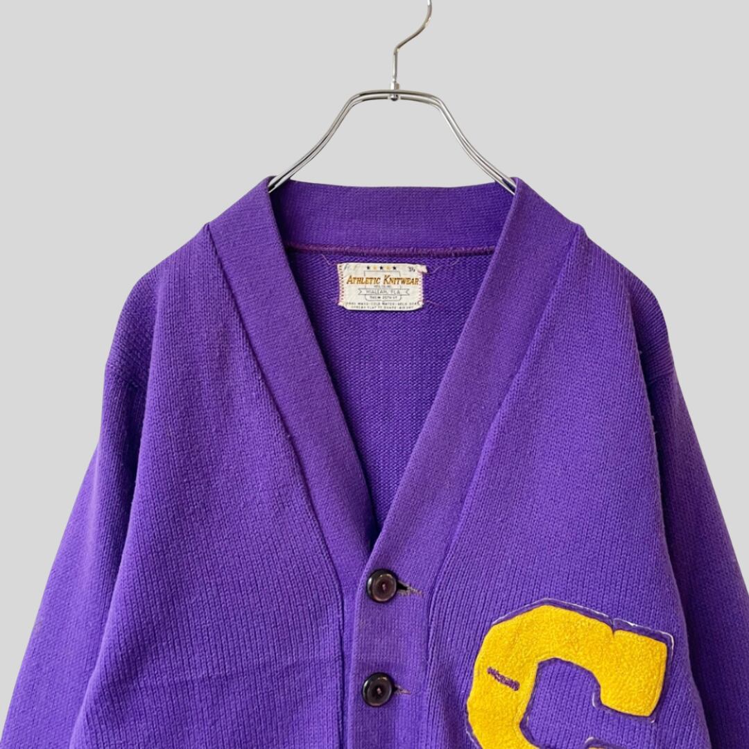 【Ladies】70s "ATHLETIC KNITWEAR" lettered knit cardigan / 古着 レタードニットカーディガン