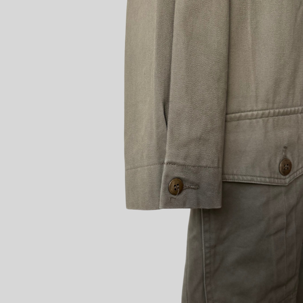 柔らかいコットンツイルの生地感がナチュラルな風合いで長いシーズン着られます。
