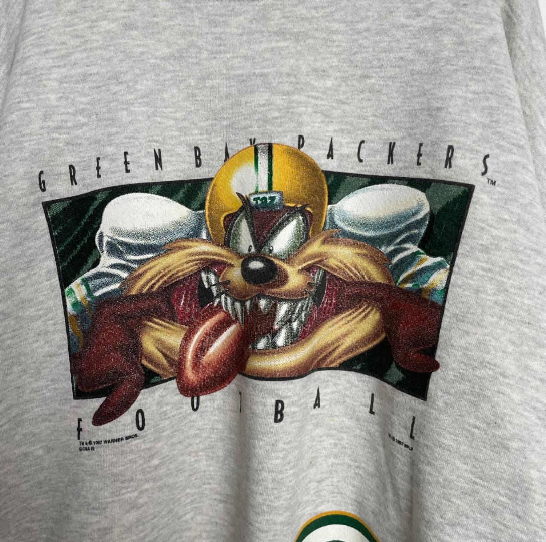 コピーライト1997年、NFLのアメフトチーム、グリーンベイパッカーズとルーニーテューンズのコラボデザインスウェット。