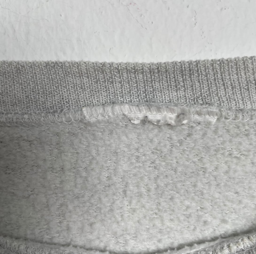 プリント下(画像4枚目)、右袖(画像5枚目)に汚れが見られます。