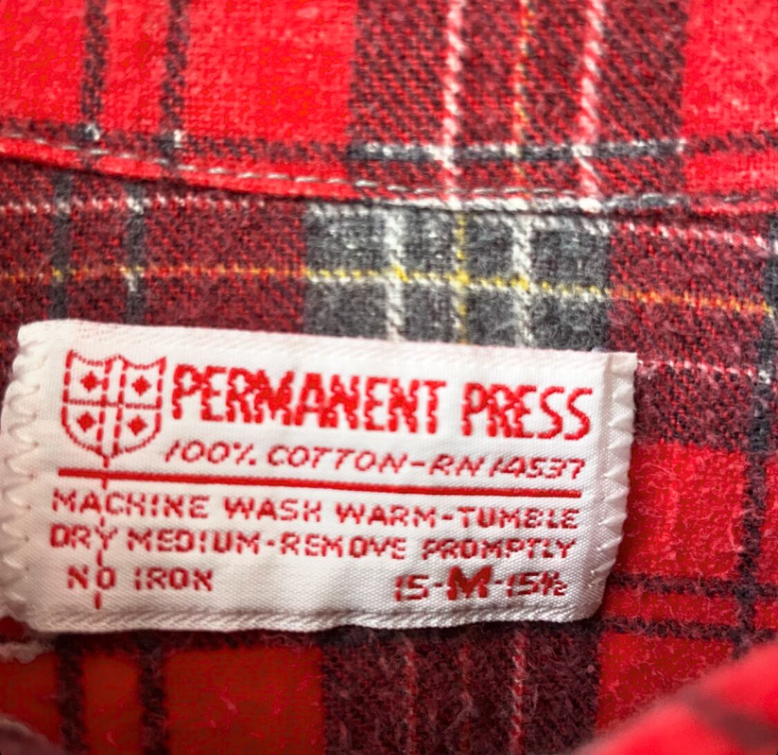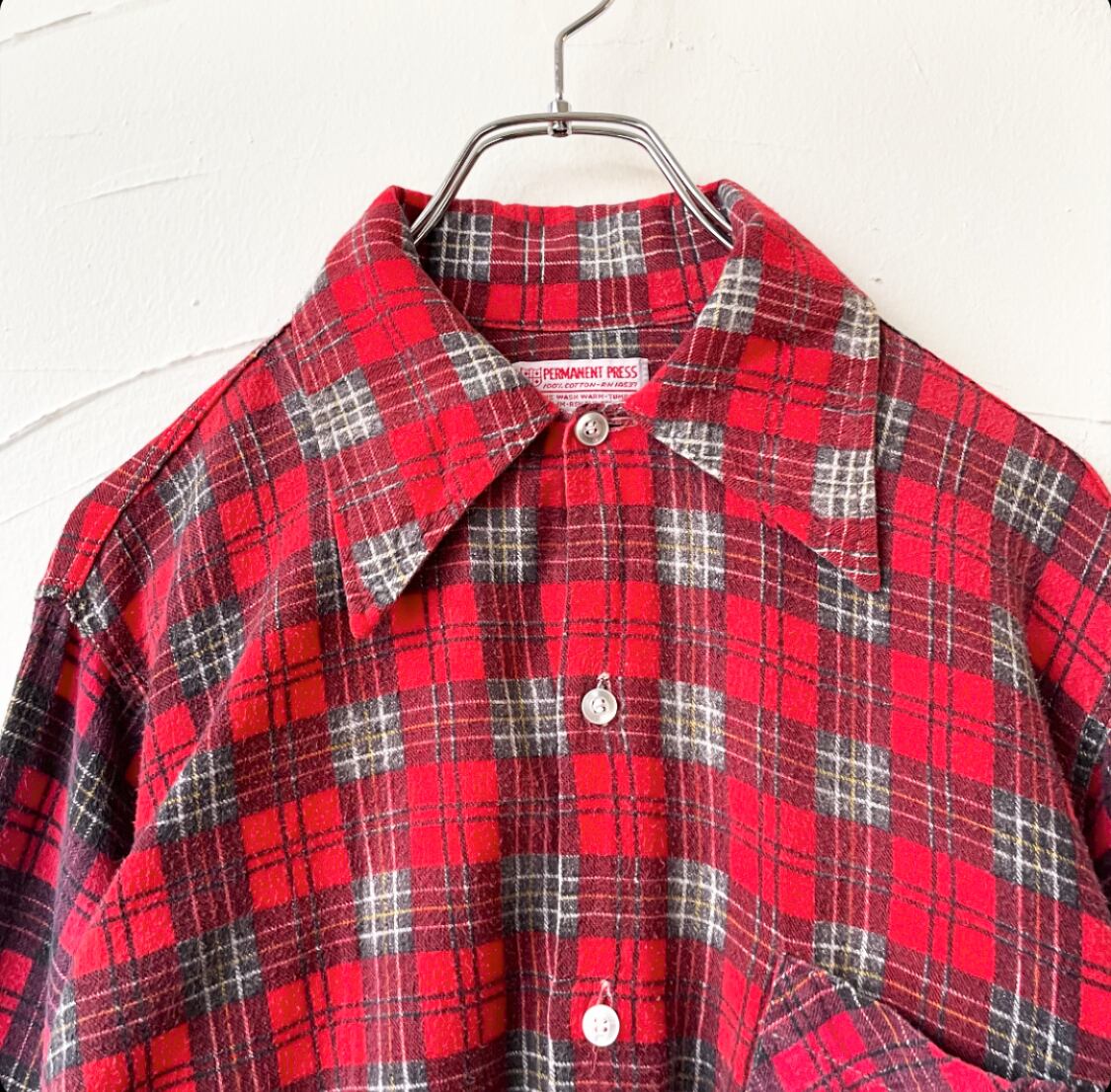 70年代、PERMANENT PRESSのチェック柄ネルシャツ。