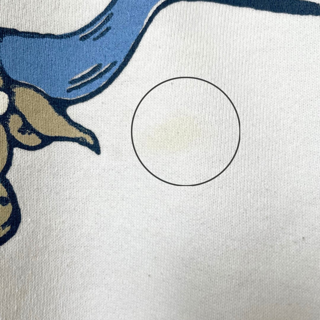 プリント向かって右(画像3枚目)、右袖(画像7枚目)に汚れが見られます。