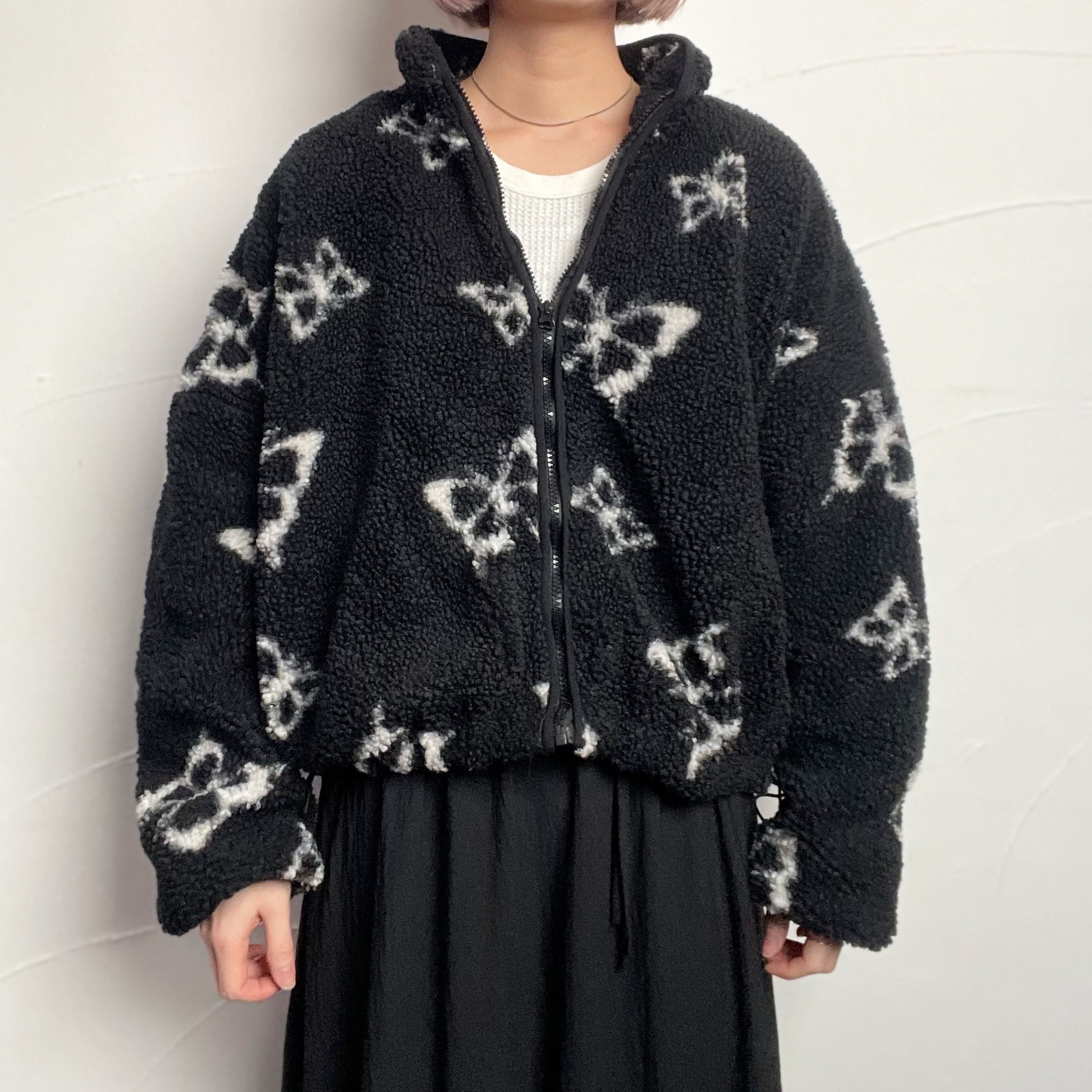 【Ladies】 Boa fleece jacket / 古着 ボアフリースジャケット 蝶柄
