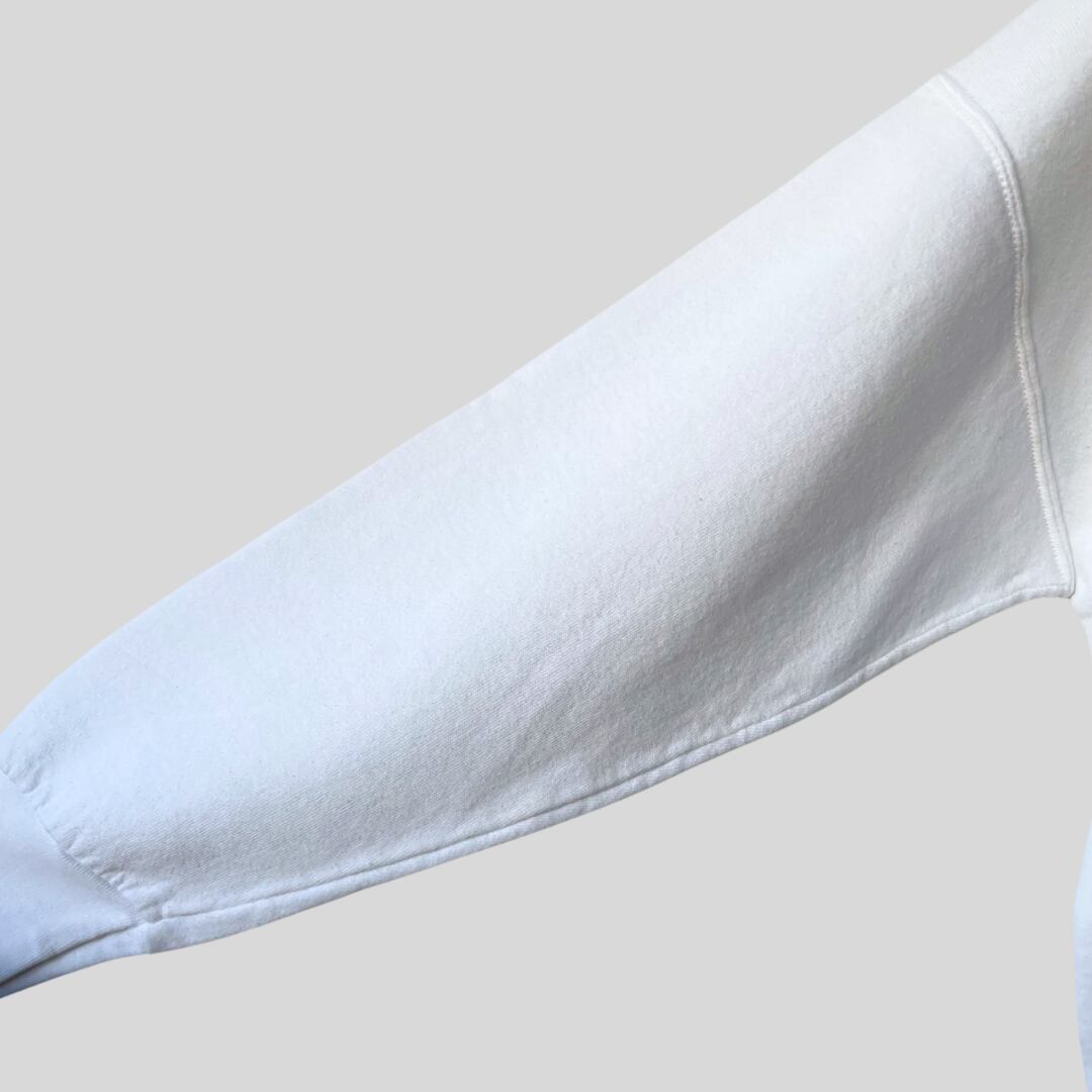 プリント下部(画像4枚目)、背面右袖(画像7枚目)に汚れが見られます。